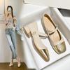 Весенние цветные женские туфли на среднем каблуке с плоской пряжкой и квадратной головкой 2024 года во французском стиле