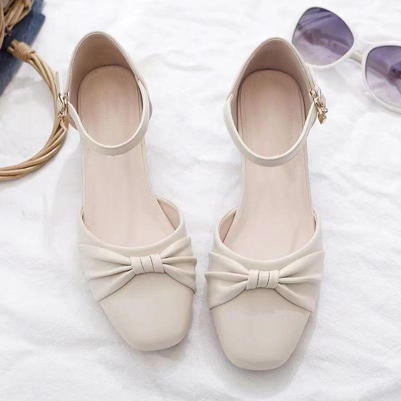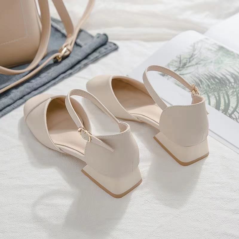 2024 Baotou сандалии женские летние толстые каблуки новые одинарные туфли на среднем каблуке квадратная головка универсальные подходящие к юбке сандалии