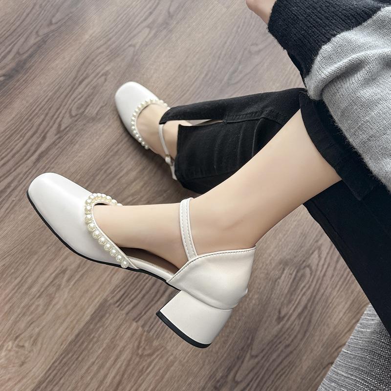 Босоножки Baotou женские весна 2024 новые туфли в стиле феи с одной пуговицей на среднем каблуке толстые каблуки высокие каблуки