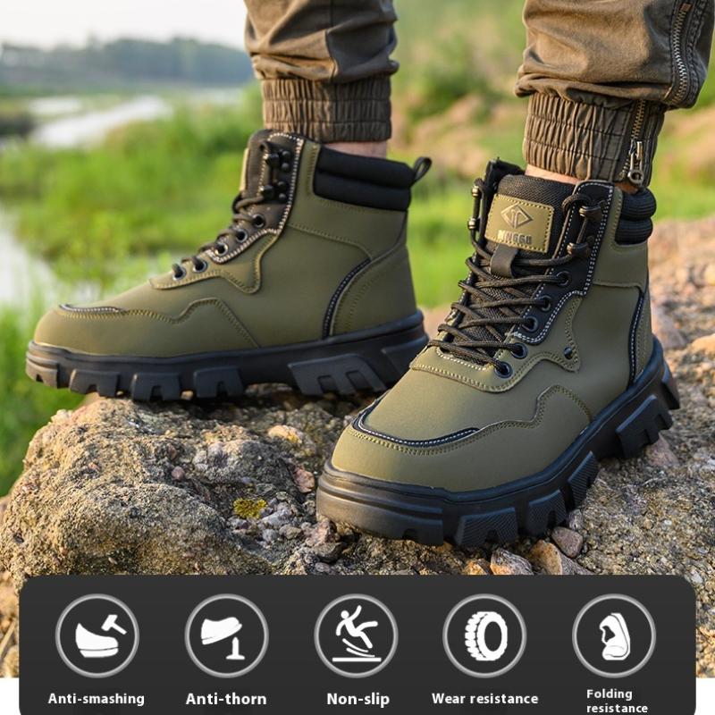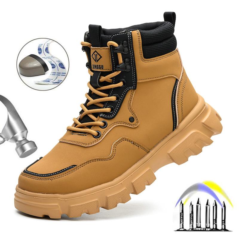Новые модные защитные рабочие ботинки, высокие водонепроницаемые защитные кожаные ботинки, противоударные и противопрокольные промышленные ботинки