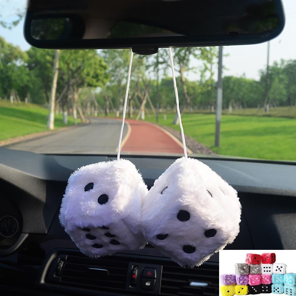2 шт. Подвеска для автомобиля Пушистые кубики с точками Подвески на зеркало заднего вида Украшение салона автомобиля Автоаксессуары Украшения Автостайлинг