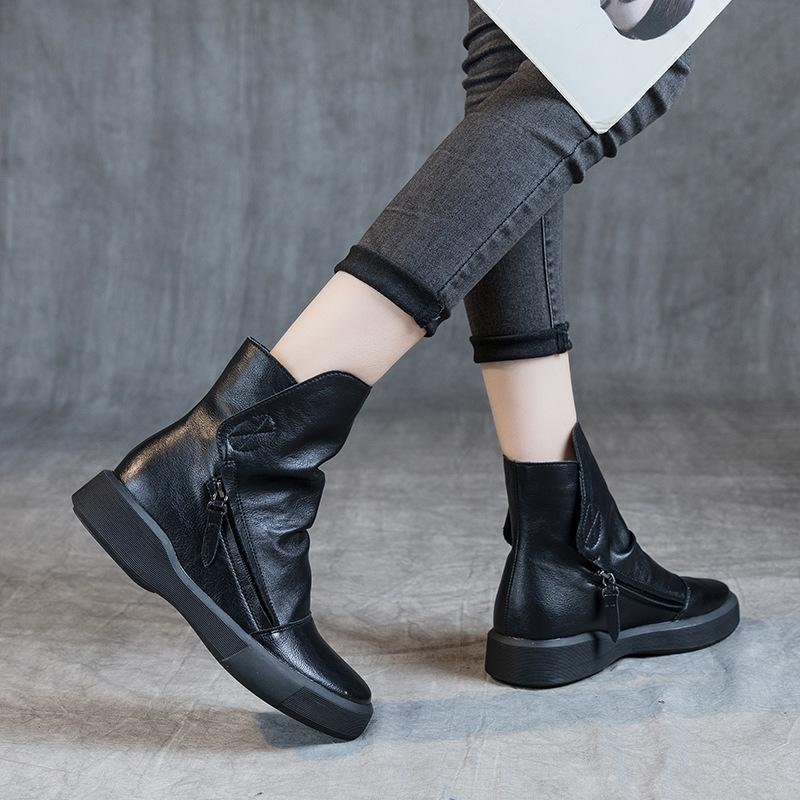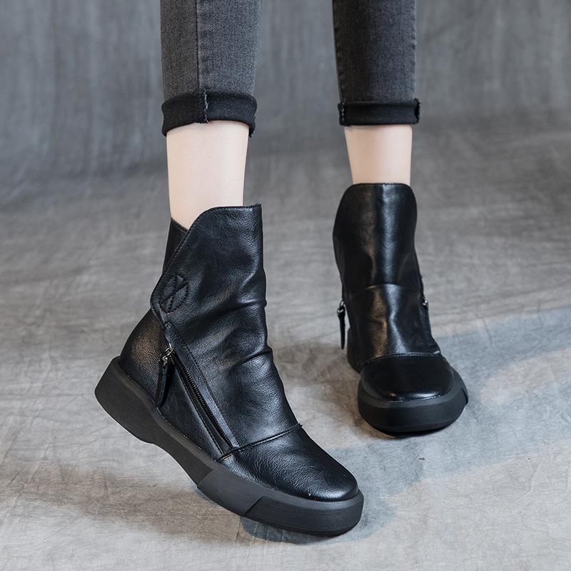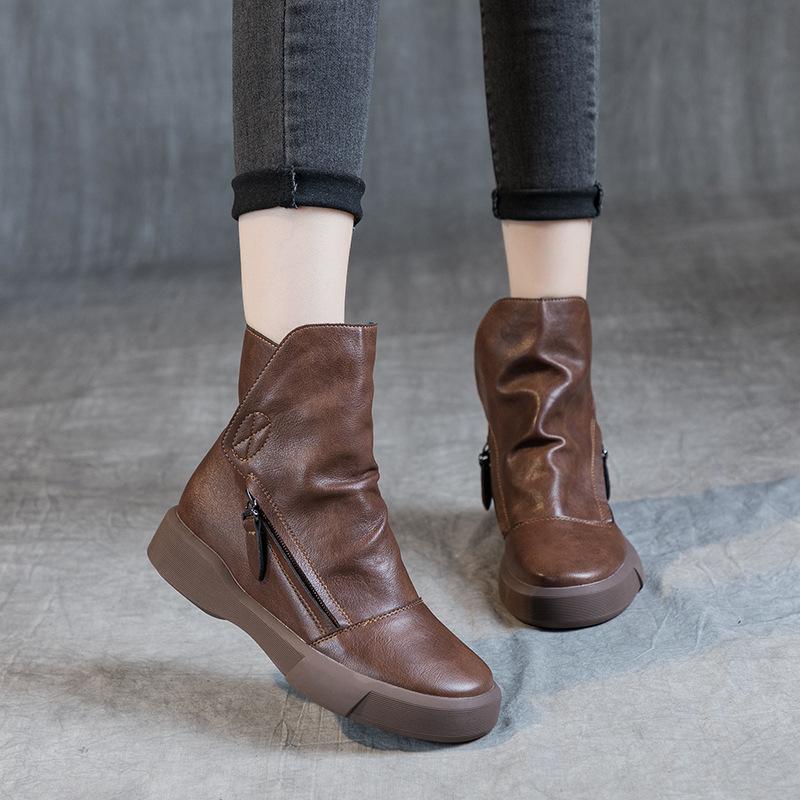 2024 Осень и зима Новые плюшевые британские ретро-ботинки короткие модные женские с круглым носком большие универсальные женские с плоской подошвой