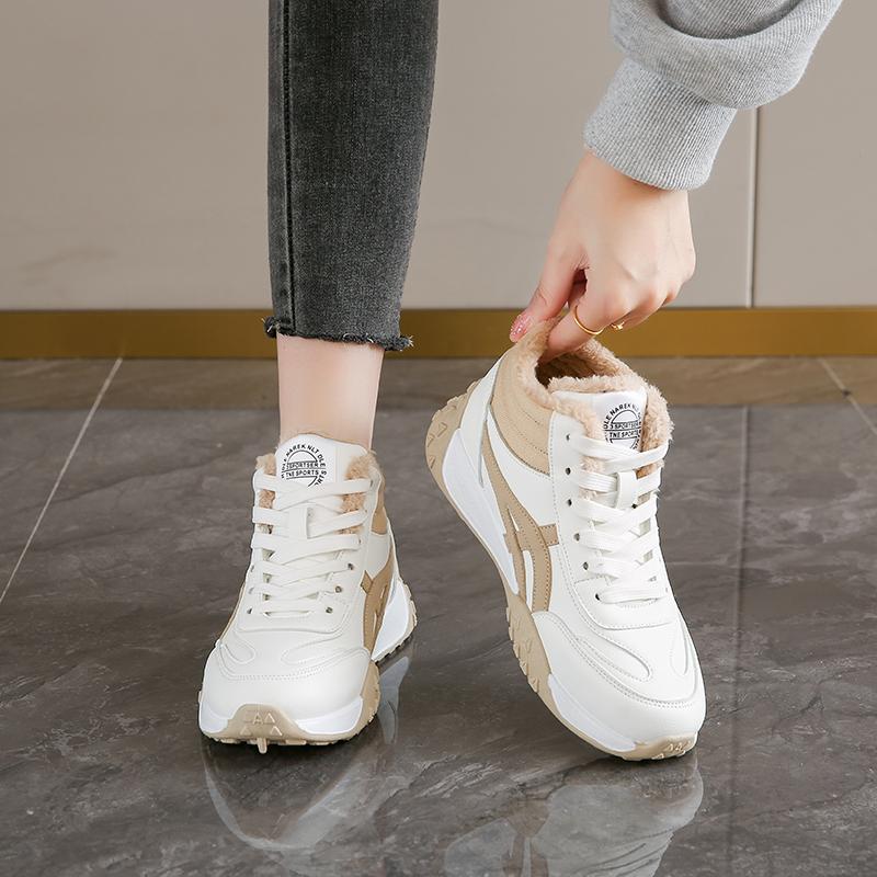 Женские плюшевые теплые зимние кроссовки женские высокие хлопковые спортивные туфли 2025 новые повседневные женские туфли на платформе со шнуровкой Zapatillas Mujer