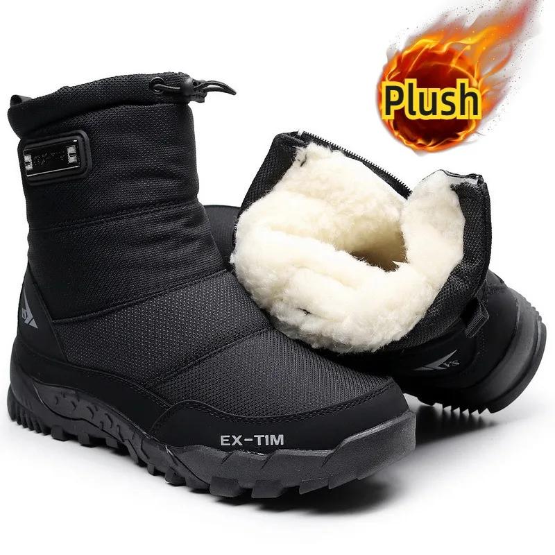 Модные мужские ботинки 2024 года, плюшевые ботинки на молнии, зимние теплые хлопковые ботинки для мужчин, резиновая подошва, нескользящая походная обувь