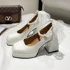Модные туфли на высоком каблуке для женщин 2024 года, новые элегантные дизайнерские туфли Мэри Джейн, женская обувь с кружевным бантом и жемчугом для свадебной вечеринки, туфли для платья с квадратным корнем