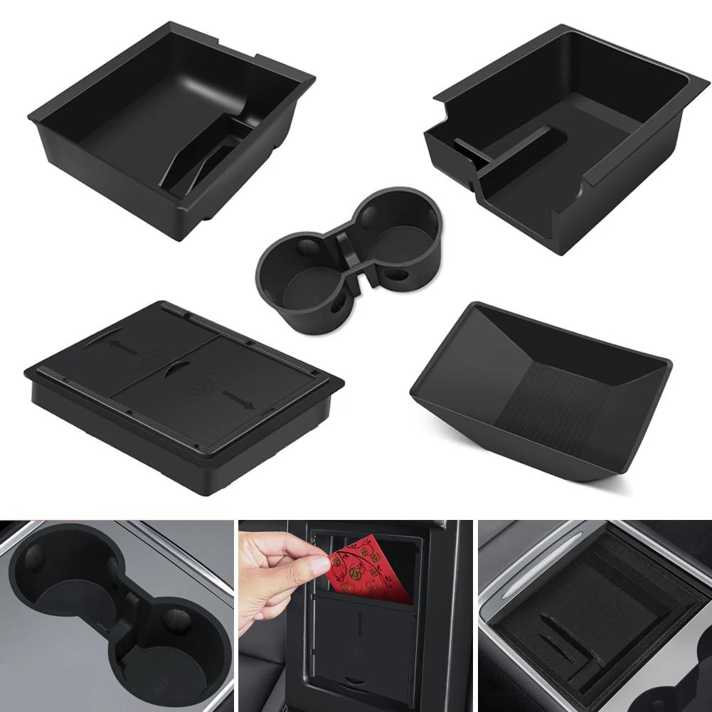 Бокс для хранения в автомобиле для Tesla Model 3 2024 Model Y 2024 Скрытый бокс в центральном подлокотнике Подстаканник Органайзер для консоли Автомобильный бокс Аксессуары