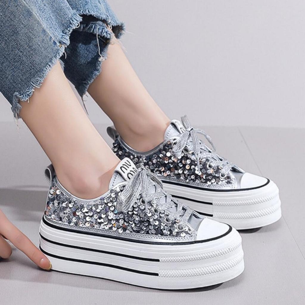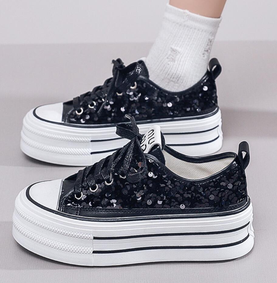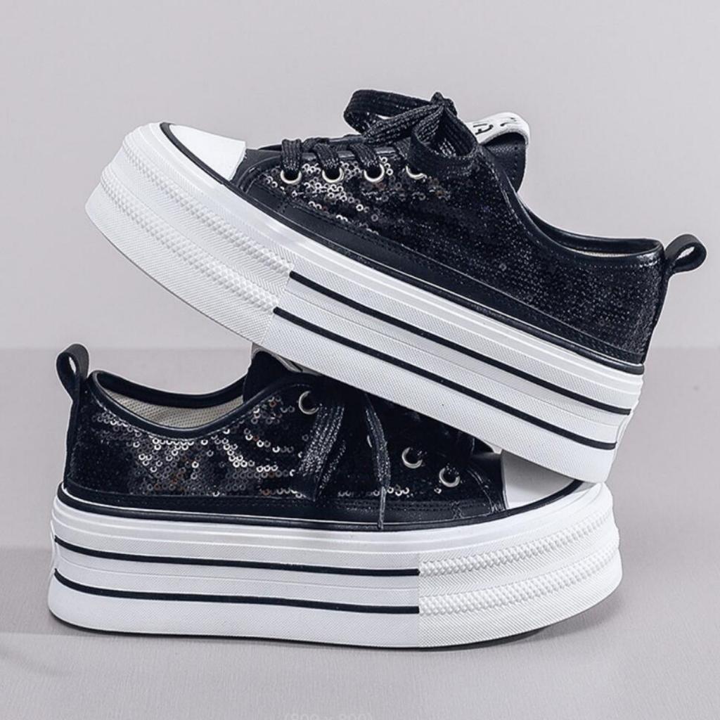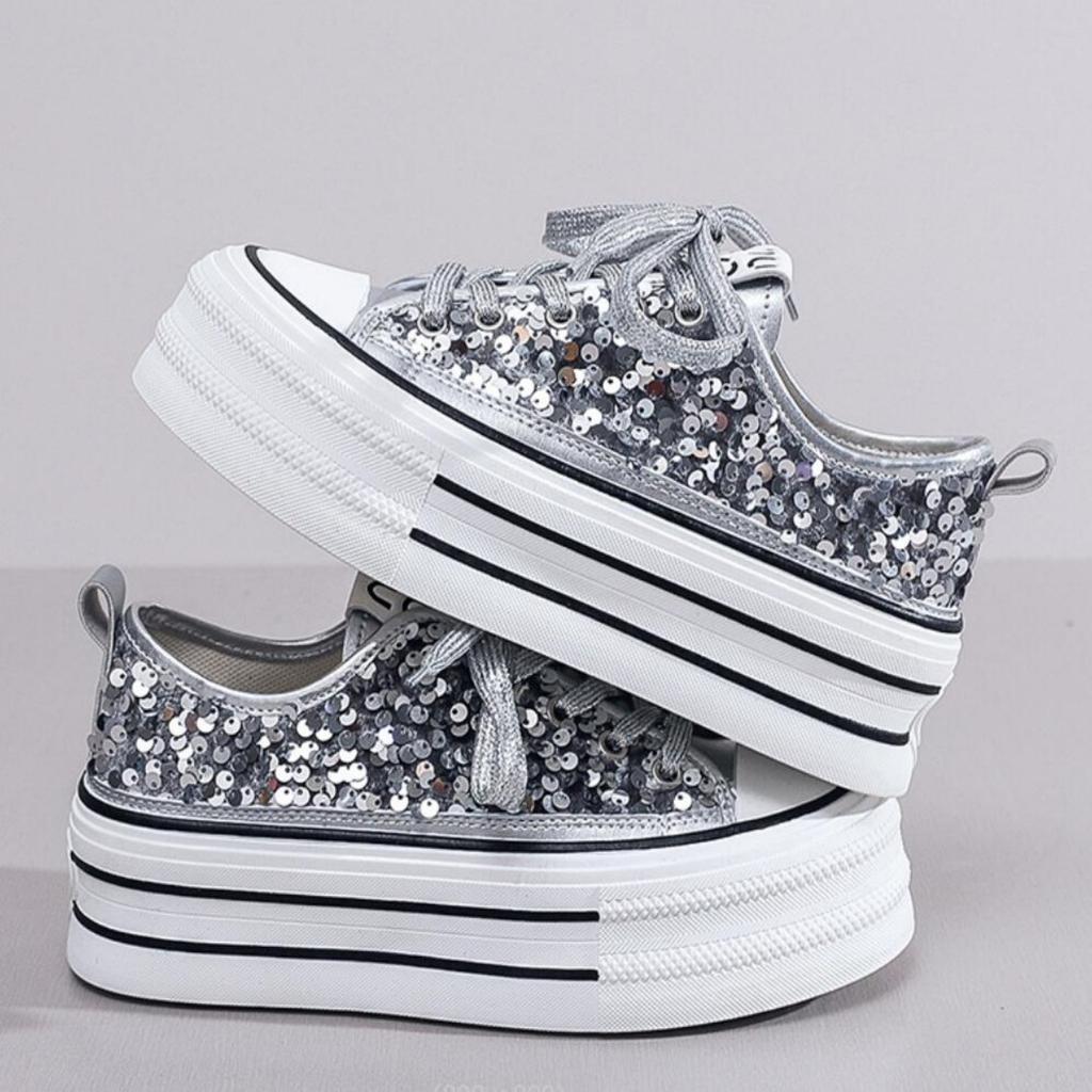 Модные женские блестящие парусиновые туфли, женские кроссовки на платформе, женские кружевные толстые повседневные кроссовки, корейский дизайн, уличная обувь для скейтбординга