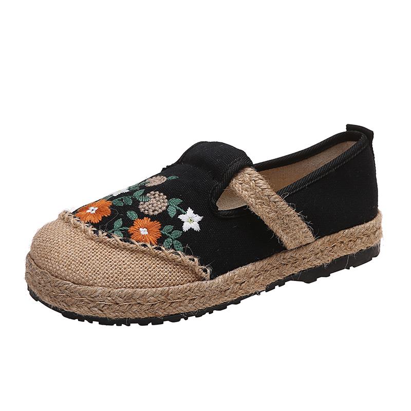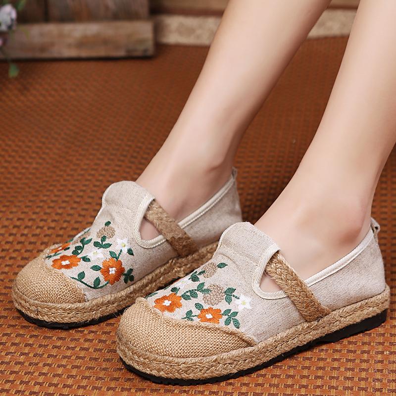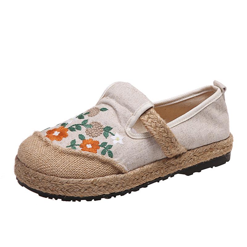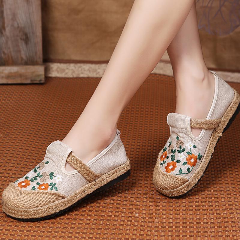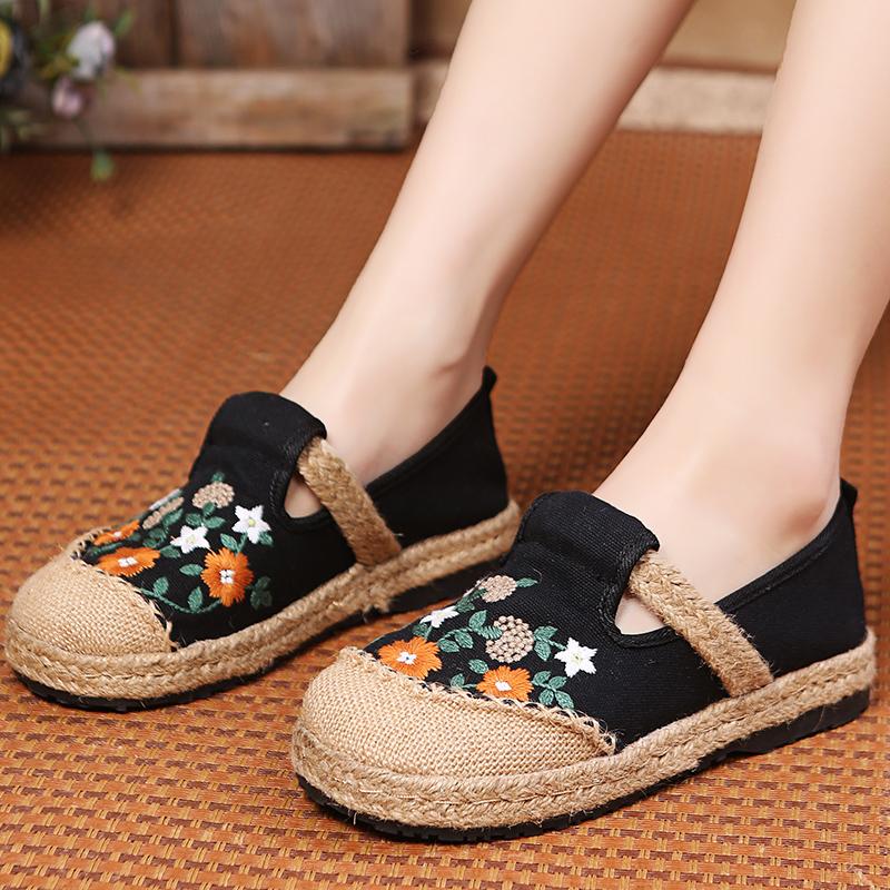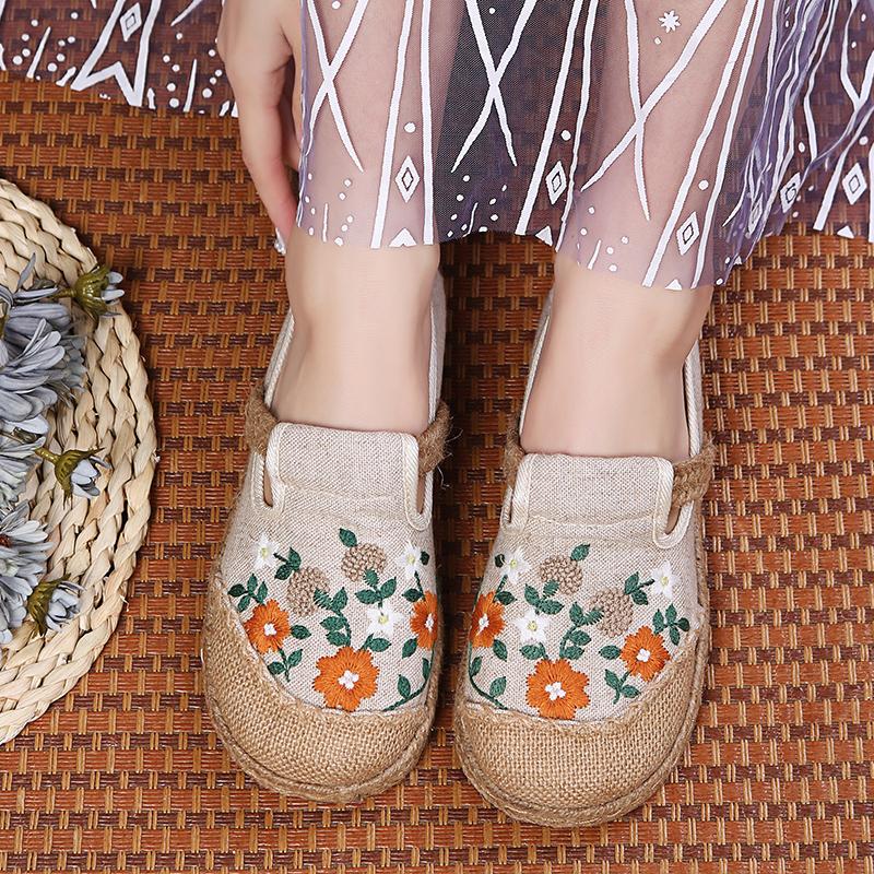 Мода 2024Женские повседневные льняные мюли ручной работы с вышивкой на плоской подошве, ретро-веганские летние женские удобные холщовые эспадрильи