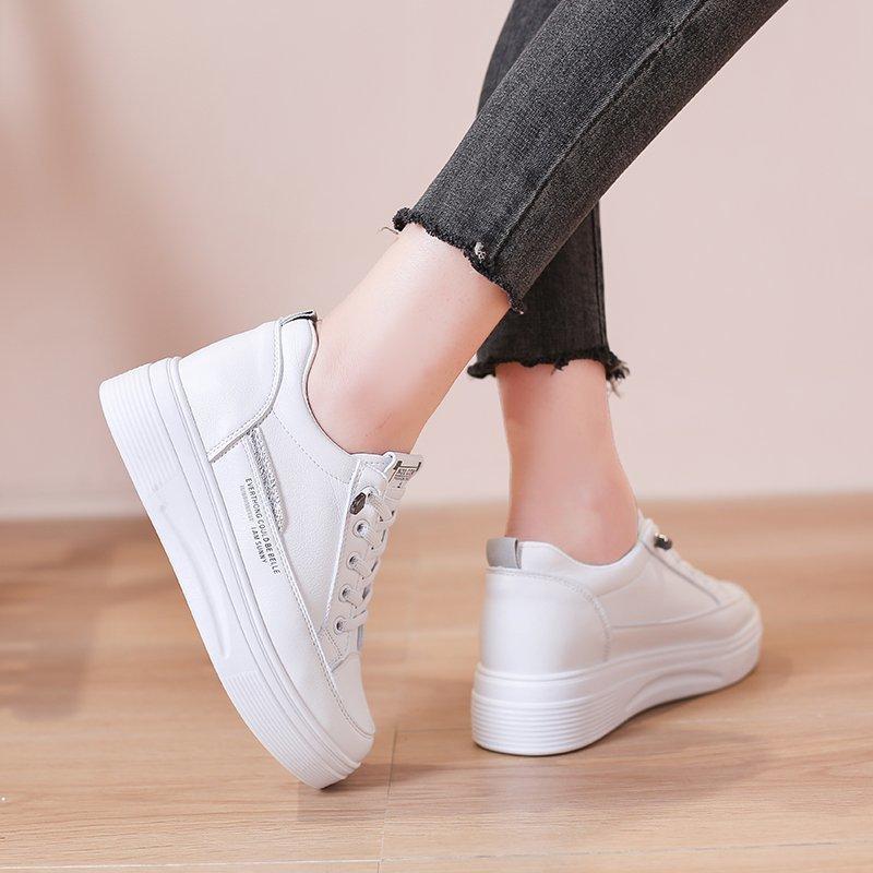 Модные женские кроссовки большого размера, осенние кожаные легкие белые кроссовки, женские туфли на вулканизированной платформе, весенние повседневные дышащие спортивные туфли