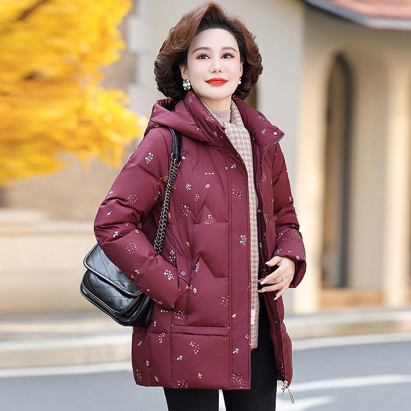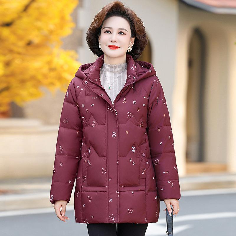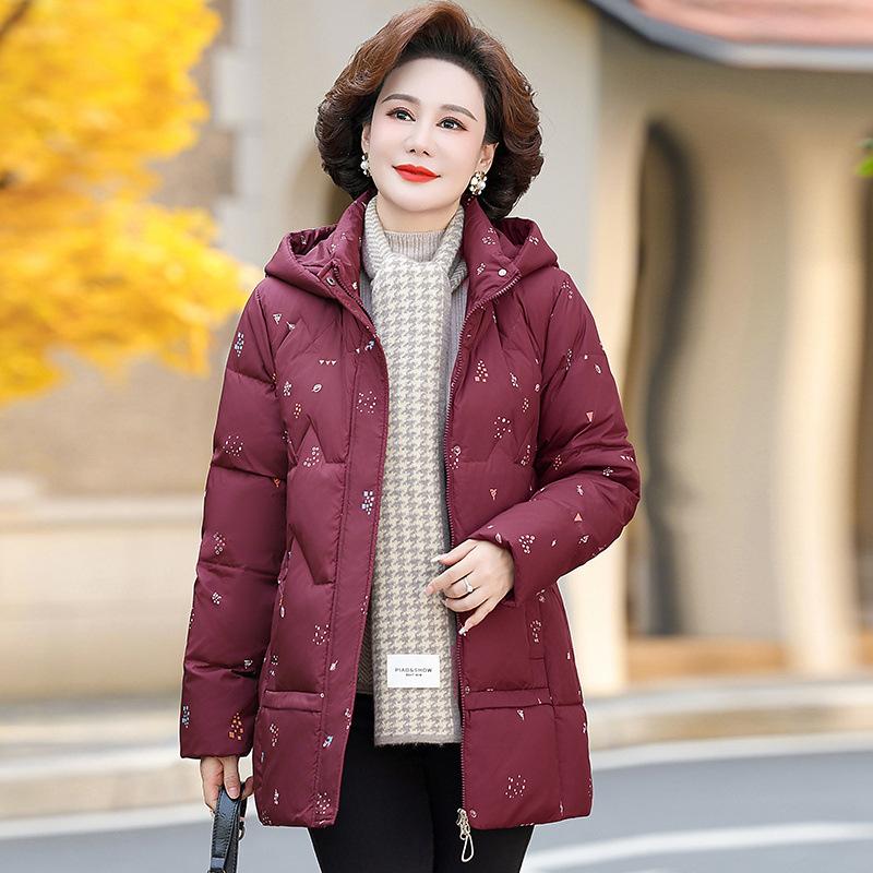 Пуховик для женщин среднего возраста, женская зимняя одежда средней длины, для женщин 50 лет и пожилых, утолщенный белый пуховик из утиного пуха