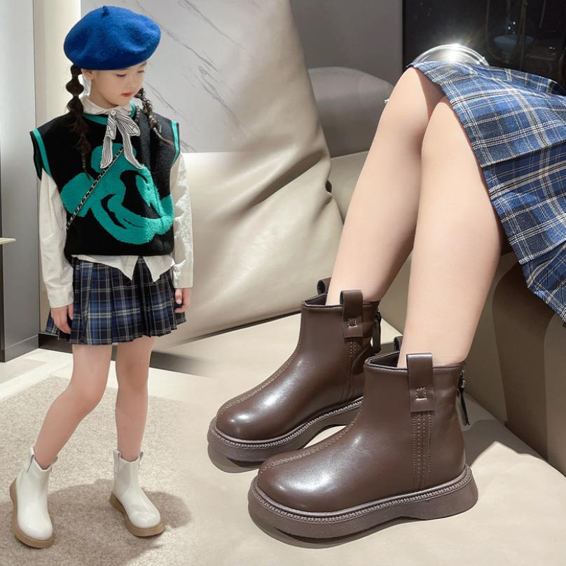 Модные детские зимние сапоги 2024 года, осень-зима, новые, для девочек, водонепроницаемые, нескользящие, ботильоны, детские, на молнии, кожаные туфли для вечеринок 23-36 — купить товар онлайн с бесплатной доставкой по всему миру!