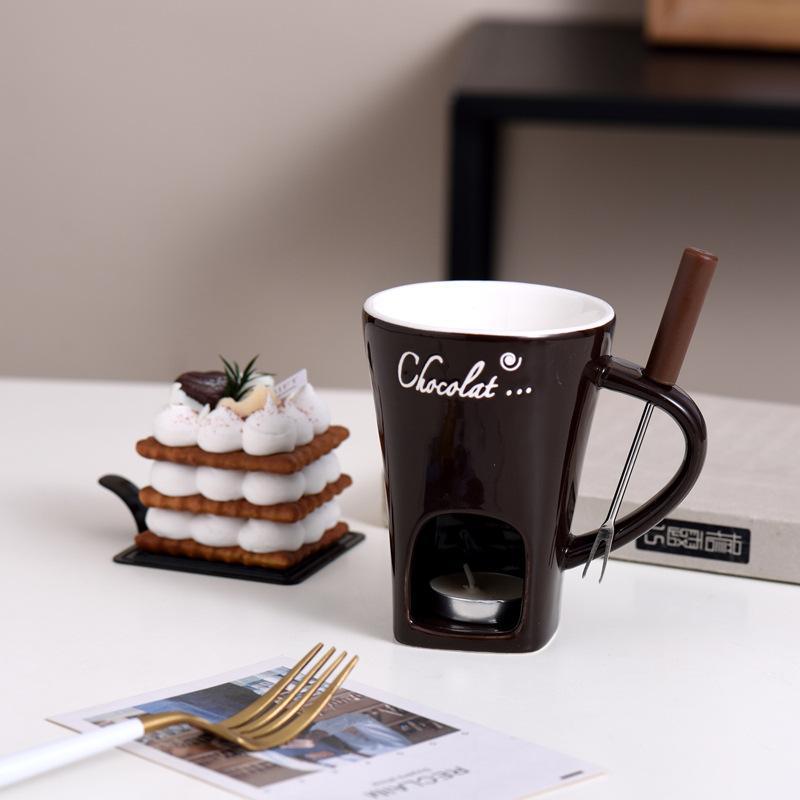 Европейская свеча чашка сыр шоколад плавящаяся керамическая кружка подогреваемая еда керамическая кружка с вилкой креативная кофейная кружка столовая посуда 130 мл