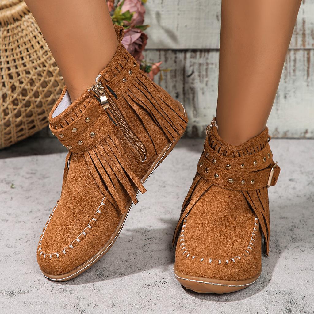Осенние ботильоны на плоской подошве, женские замшевые ботинки с кисточками в стиле ретро, модные короткие ботинки с круглым носком и мягкой подошвой, повседневная женская обувь