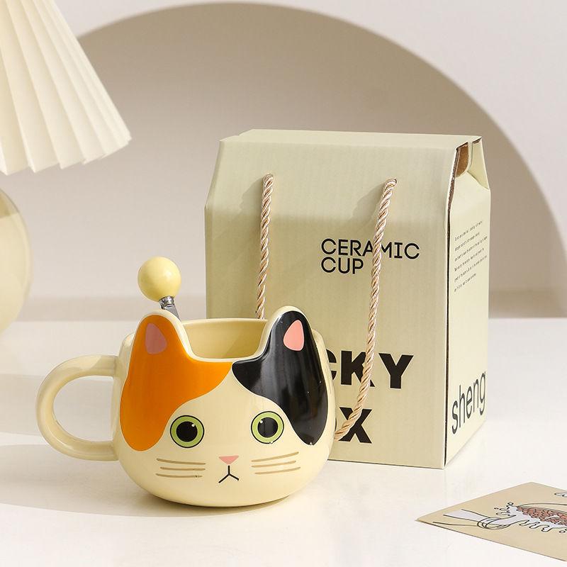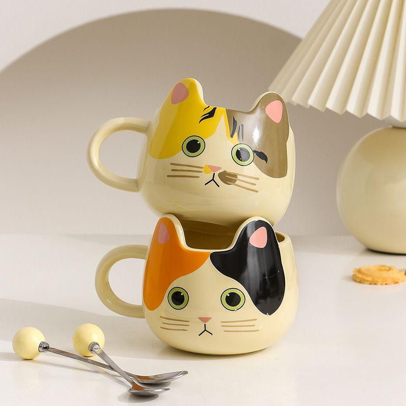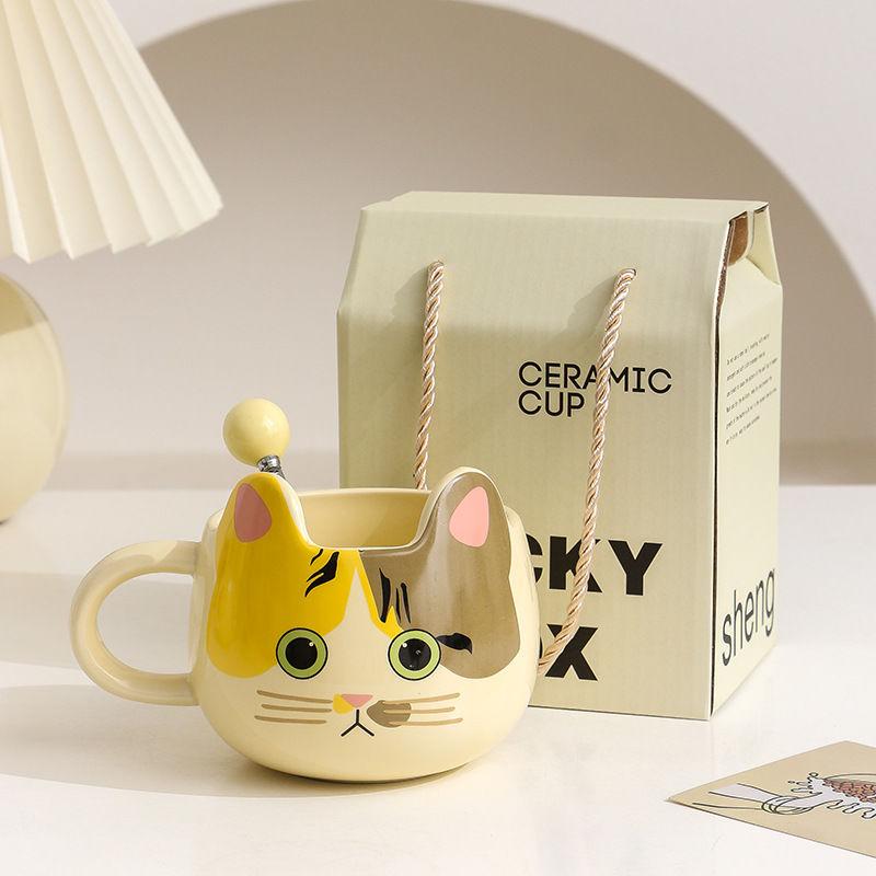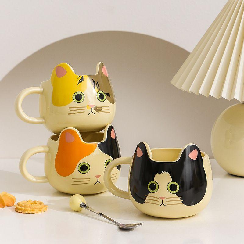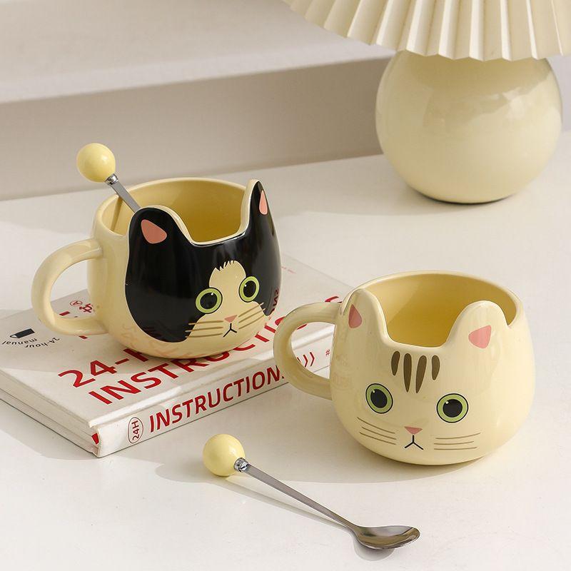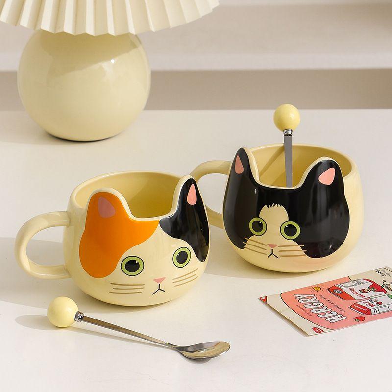 Мультяшная милая керамическая кружка с котом, креативный дизайн, персонализированная мужская и женская домашняя чашка для завтрака, молока, чая, кофе, чашки для напитков