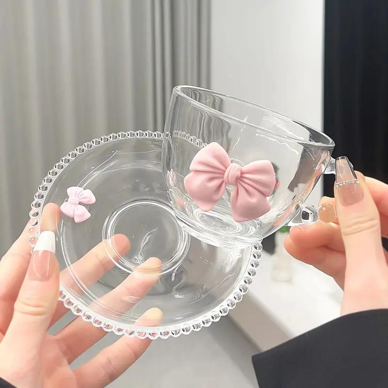 Стеклянная кружка в форме дуги с нишевым дизайном и ручкой, эстетичная кружка для воды, набор для домашнего кофе и тарелок, посуда для питья