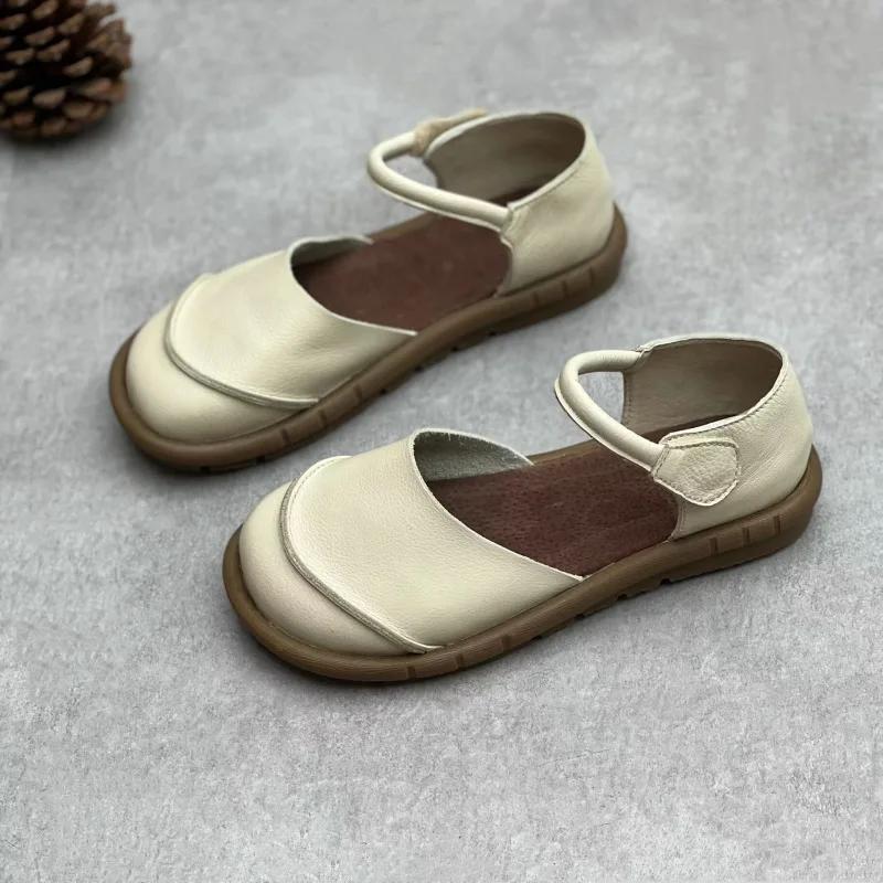 Модные летние туфли из коровьей кожи на плоской подошве, женские туфли в стиле ретро, кожаные мягкие женские сандалии, обувь для пожилых людей