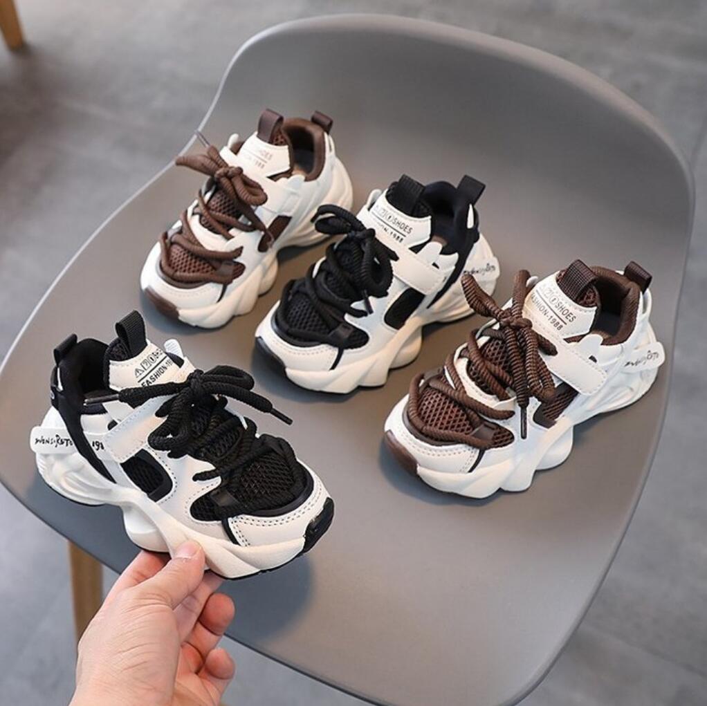Мода 2024 года, новые кроссовки для девочек, подходящие по цвету, мягкие, на шнуровке, мягкие, дышащие, детские, сетчатые, спортивные туфли для мальчиков, нескользящие, кроссовки для бега