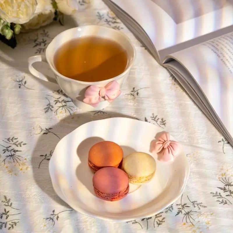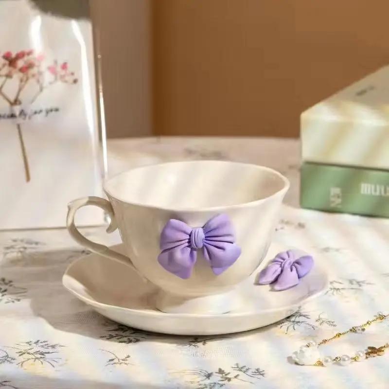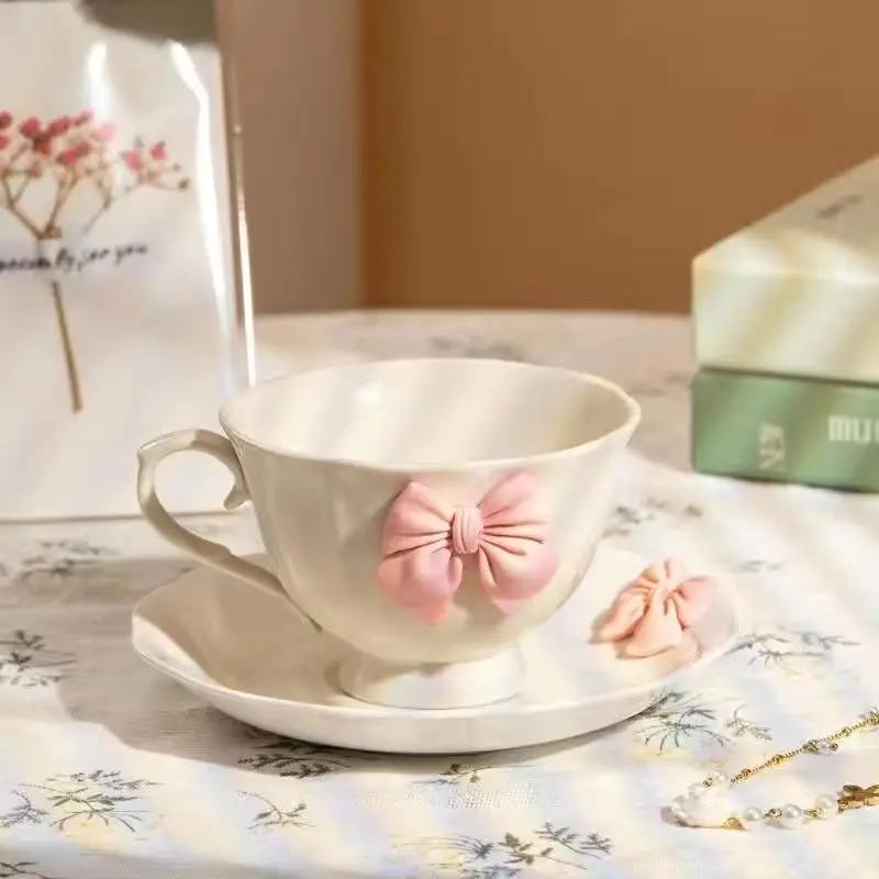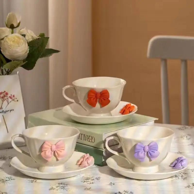 Набор керамических чашек для кофе с бантом Изысканный женский послеобеденный чай Кофе латте Чашка для латте Домашний завтрак Молочный напиток Кружка Подарок на день рождения