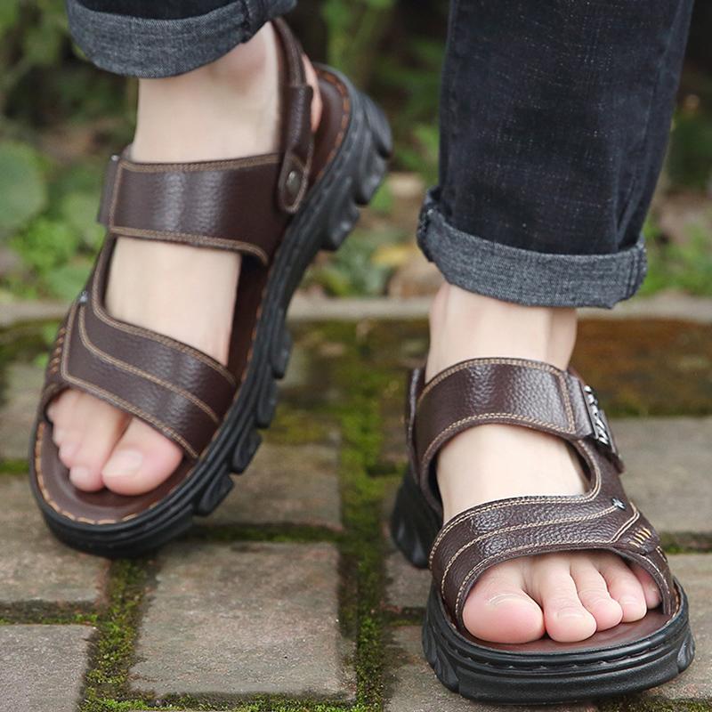 Модные летние сандалии из натуральной кожи для мужчин, пляжная обувь, роскошные дышащие повседневные сандалии, мужские забродные туфли, нескользящие тапочки с широкой подкладкой