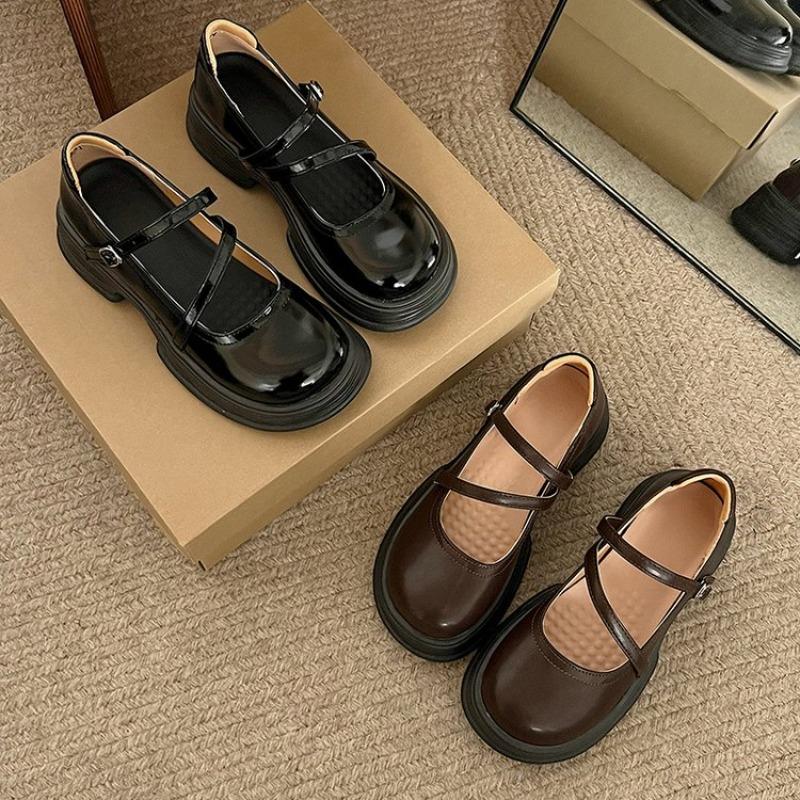 Новые туфли Мэри Джейн на толстой платформе для женщин, лакированная кожа, с двойной пряжкой, с ремешком на щиколотке, женские туфли в стиле Лолиты 2024 года, весна 2020 г.