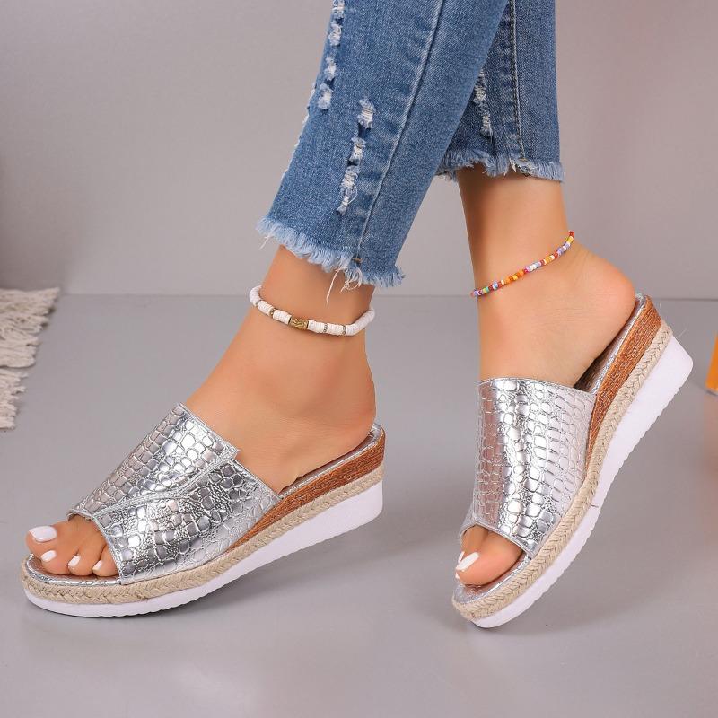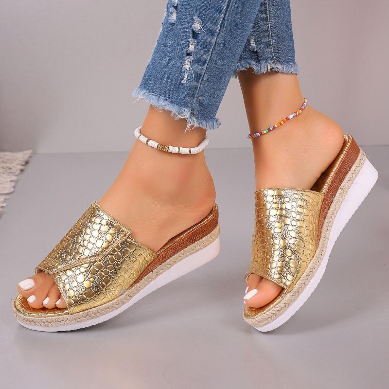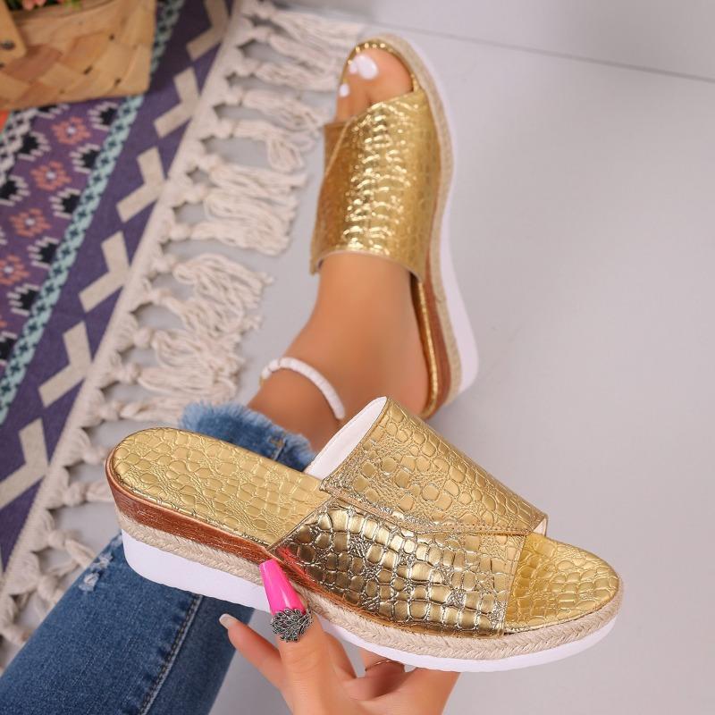 2024 Новые модные полосатые тапочки на платформе, женские летние блестящие босоножки на танкетке, женские нескользящие повседневные тапочки больших размеров