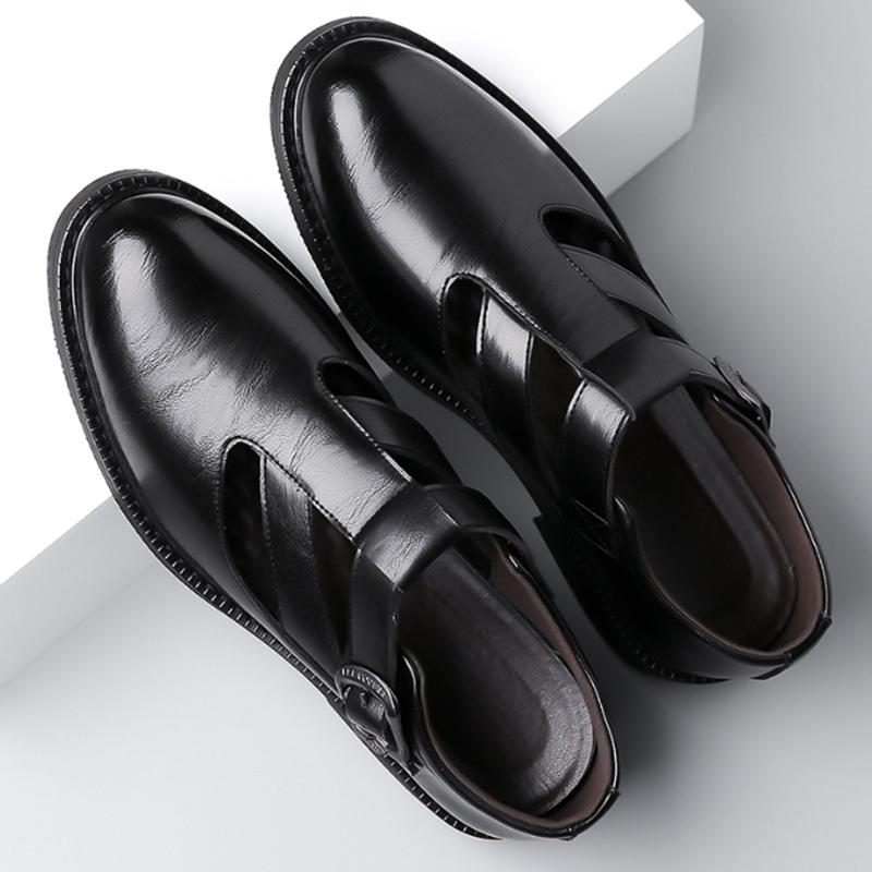 Модные мужские кожаные туфли, деловые, повседневные, формальные, с острым носком, мягкая подошва, нескользящие, летние сандалии, черные кожаные туфли, роскошные туфли