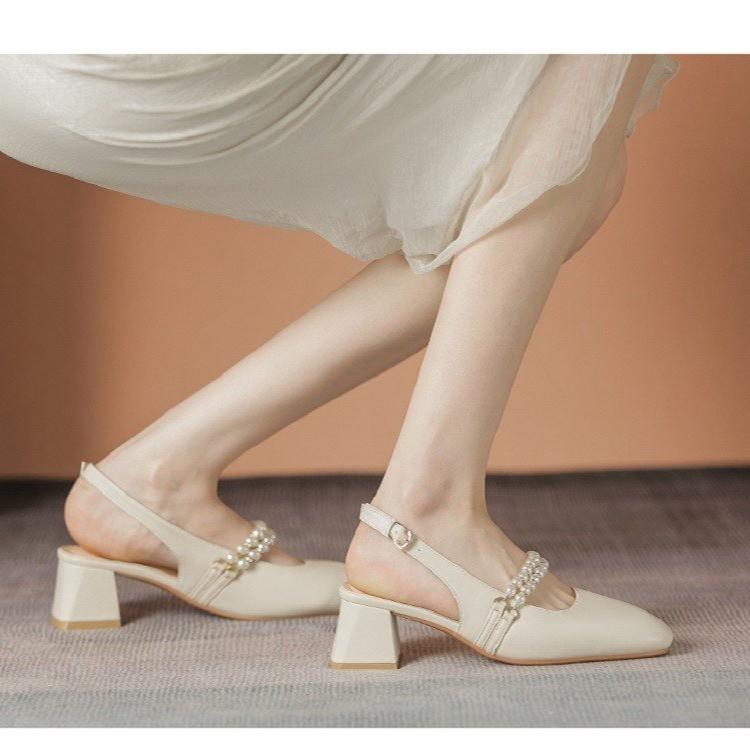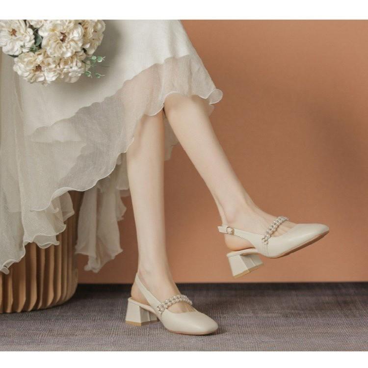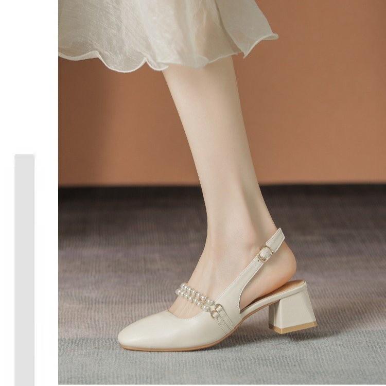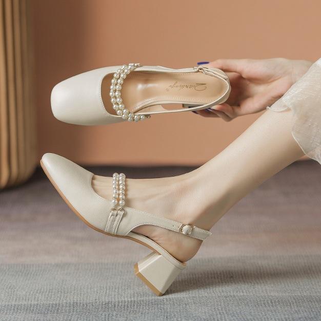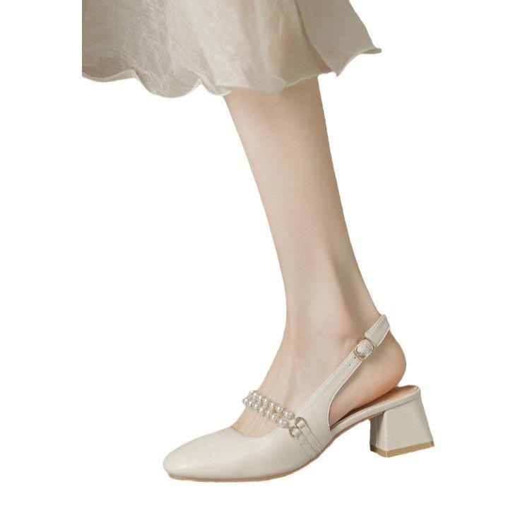 Сандалии Baotou женские сандалии жемчужные толстые с Мэри Джейн летние новые мягкие подошвы с одним словом ремень высокие каблуки