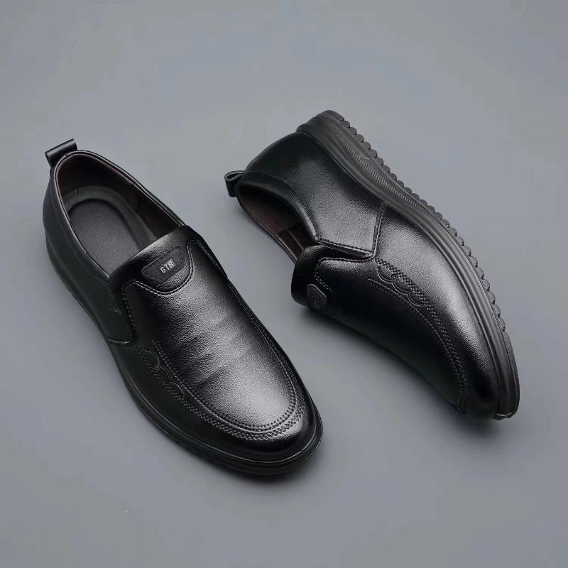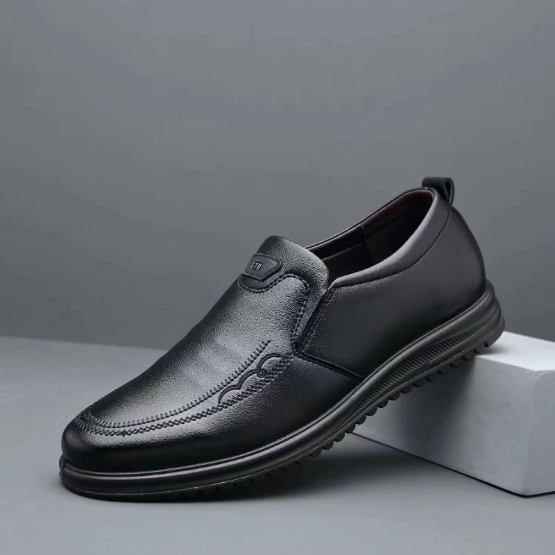 Мода 2024 года, осень, новые мужские повседневные кожаные туфли, удобные и дышащие кожаные туфли без застежек, британские однотонные мужские туфли