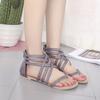 Женские сандалии летние гладиаторские пляжные повседневные туфли на плоской подошве 2024 года, новые модные однотонные шлепанцы, женские тонкие плетеные римские туфли с зажимом для носка