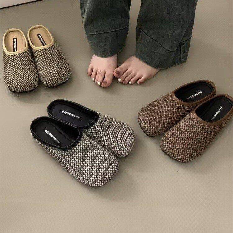 2024 Новые женские тапочки Gentle Wrap Head Half Slipper Женские летние пальто Новые плоские туфли без каблуков Lazy Muller Шлепанцы женские
