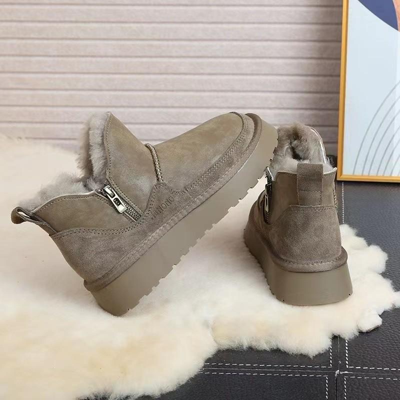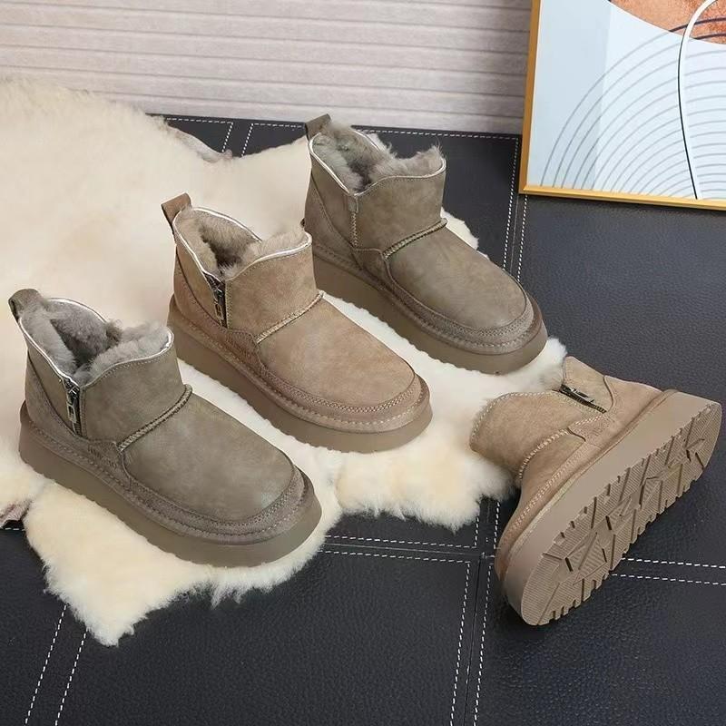 Женские 2024 Зимние Кожаные Шерстяные Короткие Ботинки-Трубы с Флисом Теплые Водонепроницаемые на Толстой Подошве Хлопковые Ботинки Женские