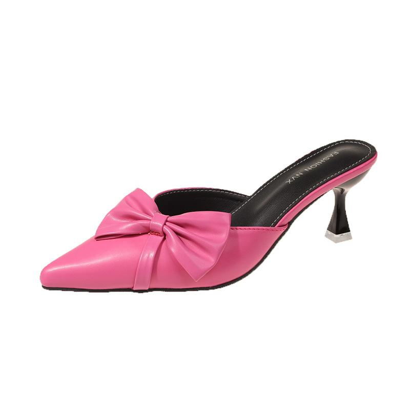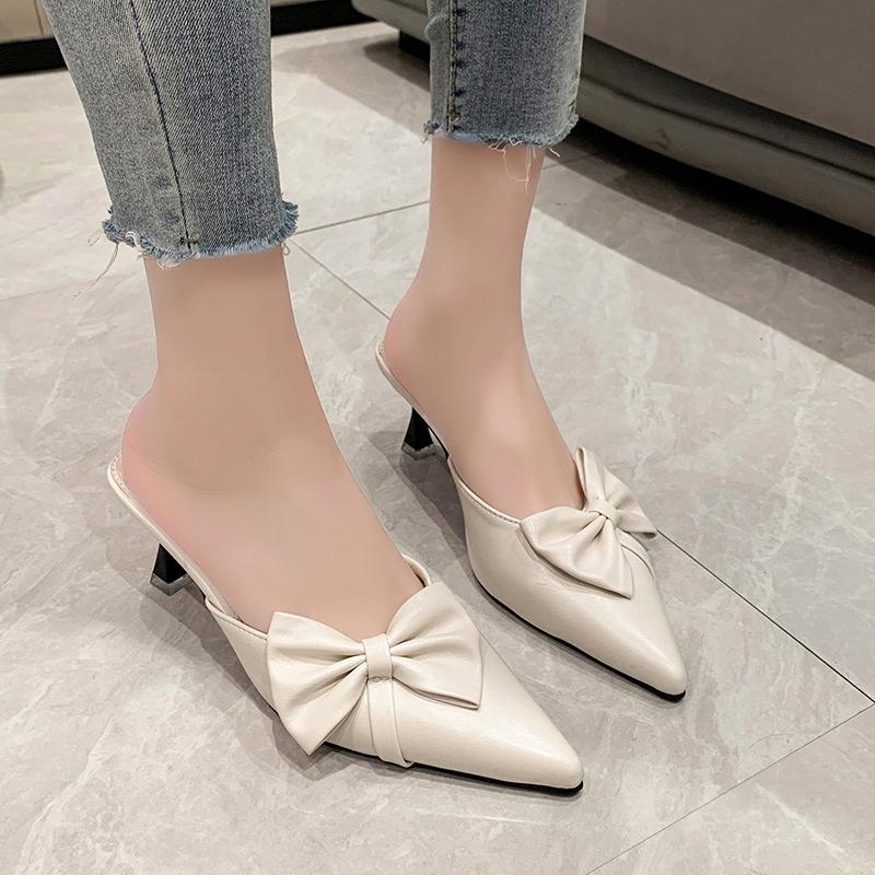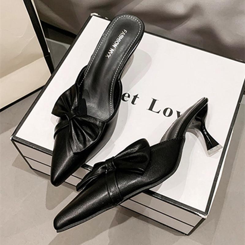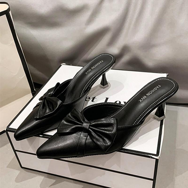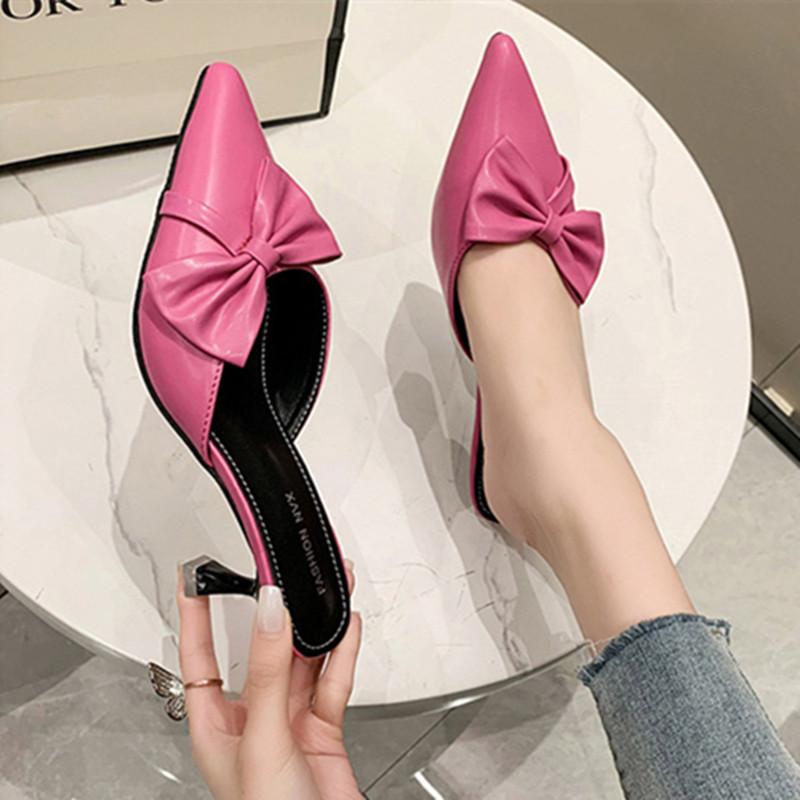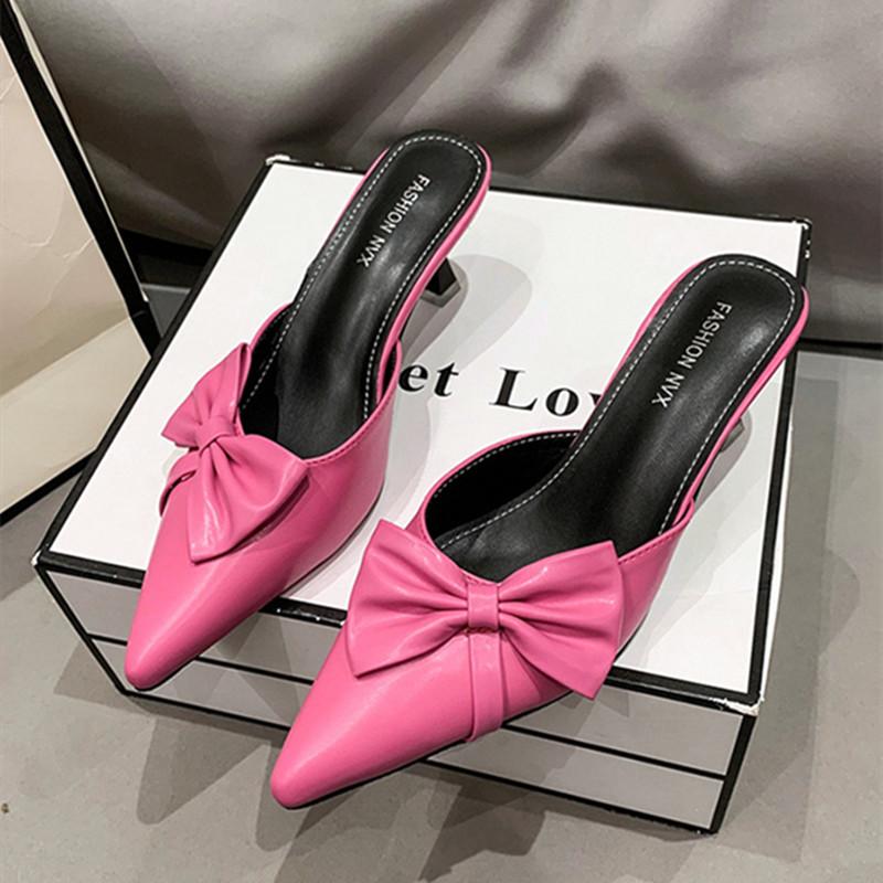Модные новые туфли на высоком каблуке для женщин, элегантные туфли-лодочки с острым носком, изящные туфли-слайды на высоком каблуке для женщин, модные дизайнерские босоножки с бантом для женщин