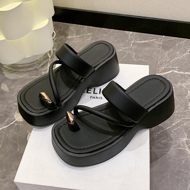 Set Toe Модные женские тапочки Летние новые большие носки с блестками Простая текстура Толстая подошва Женские сандалии Тапочки Sandalias De Mujer