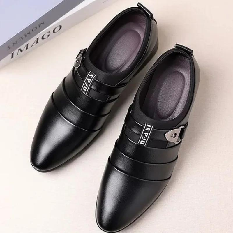 Модная обувь для мужчин с острым носком из кожи, повседневные официальные туфли для мужчин, тренд 2024 года, дешевая распродажа, элегантные и классические туфли 39 для вечеринок