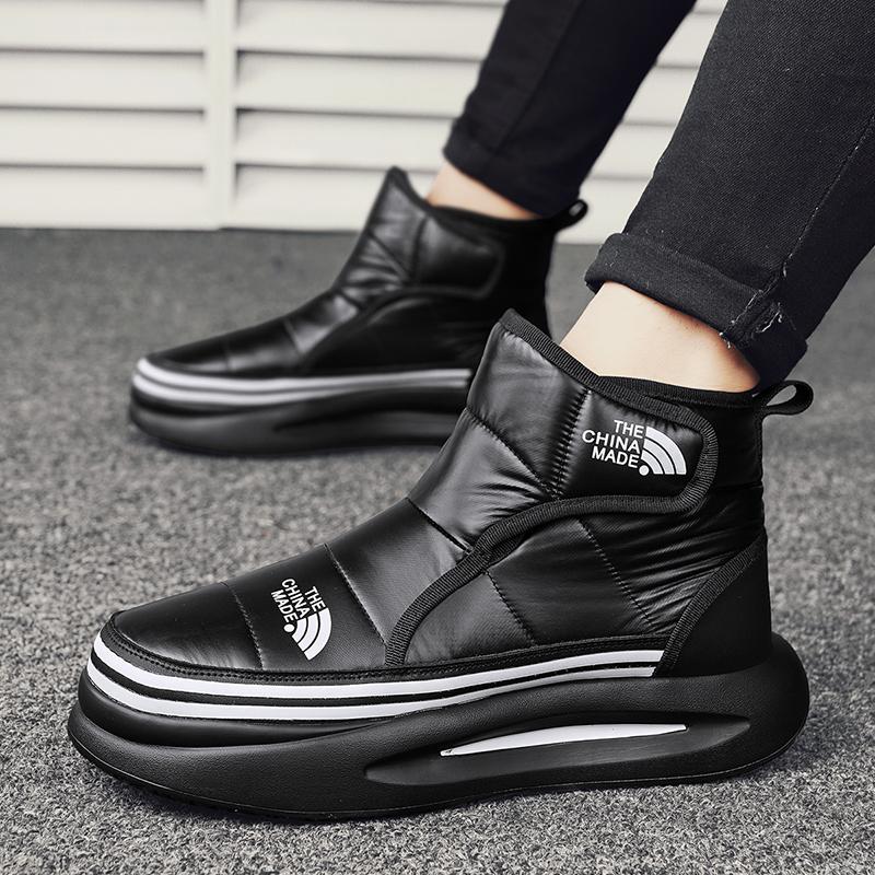 Модная зимняя обувь для мужчин, меховые теплые удобные зимние ботинки, водонепроницаемые, пуховые, высокие, на платформе, теплые походные ботинки черного цвета