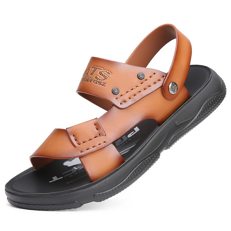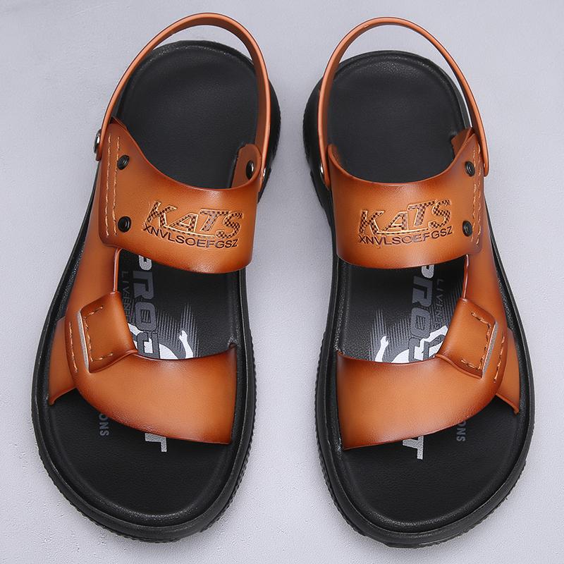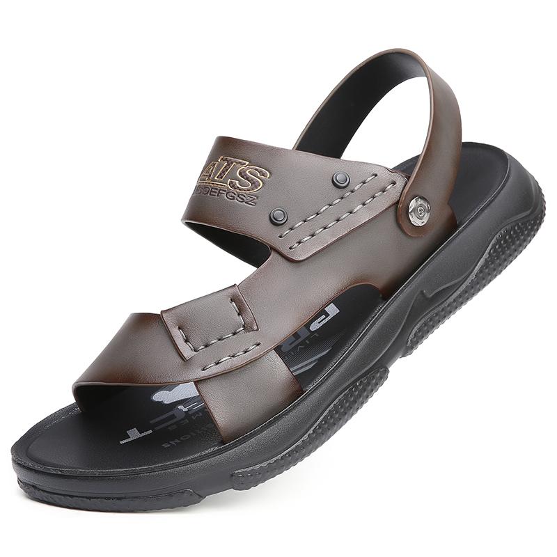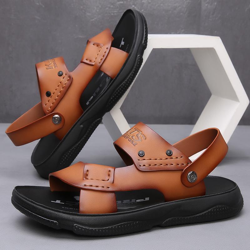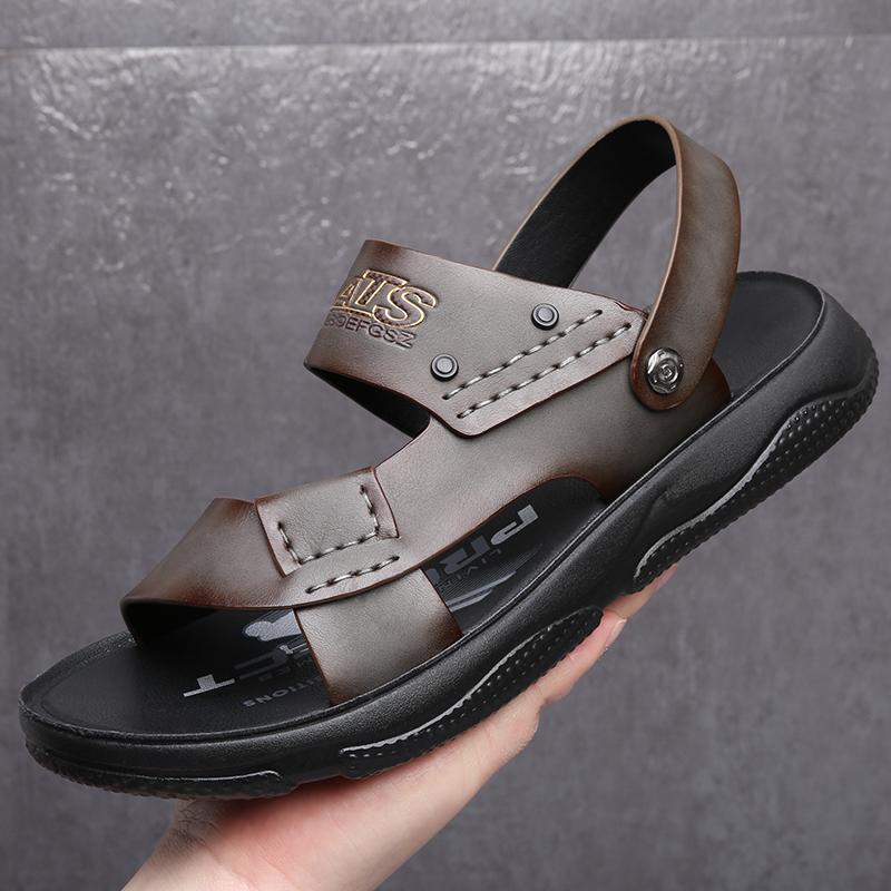 Модные летние нескользящие кожаные сандалии с открытым носком Новые сандалии и шлепанцы Мужские сандалии из натуральной кожи Взрослая обувь на толстой подошве для пляжа