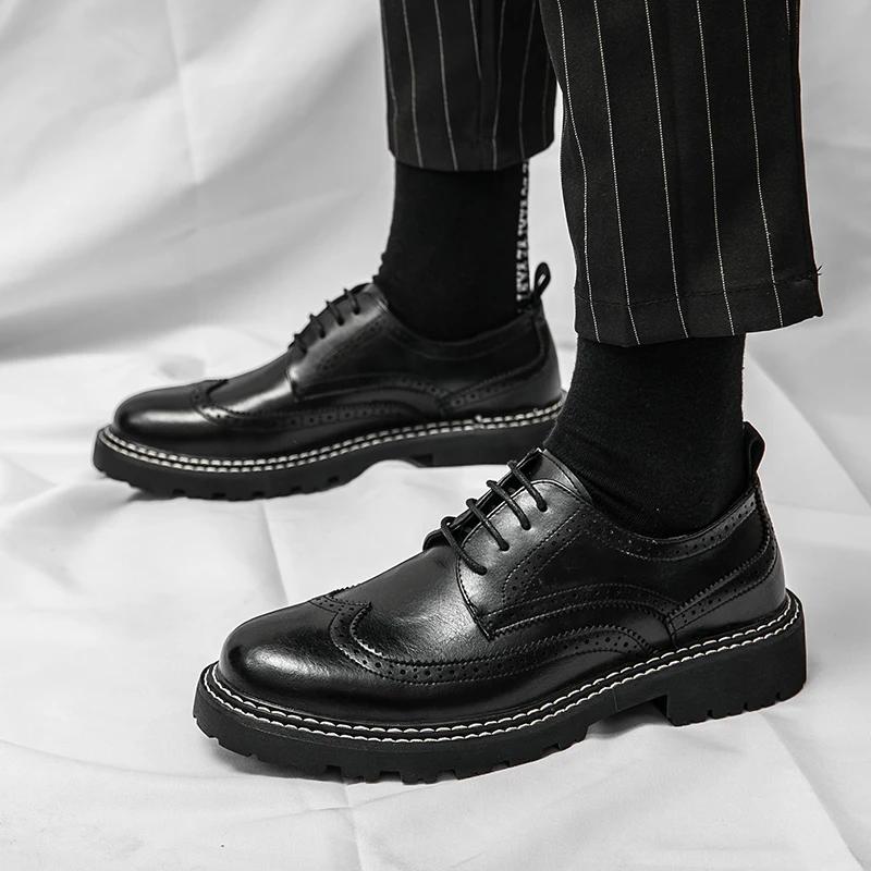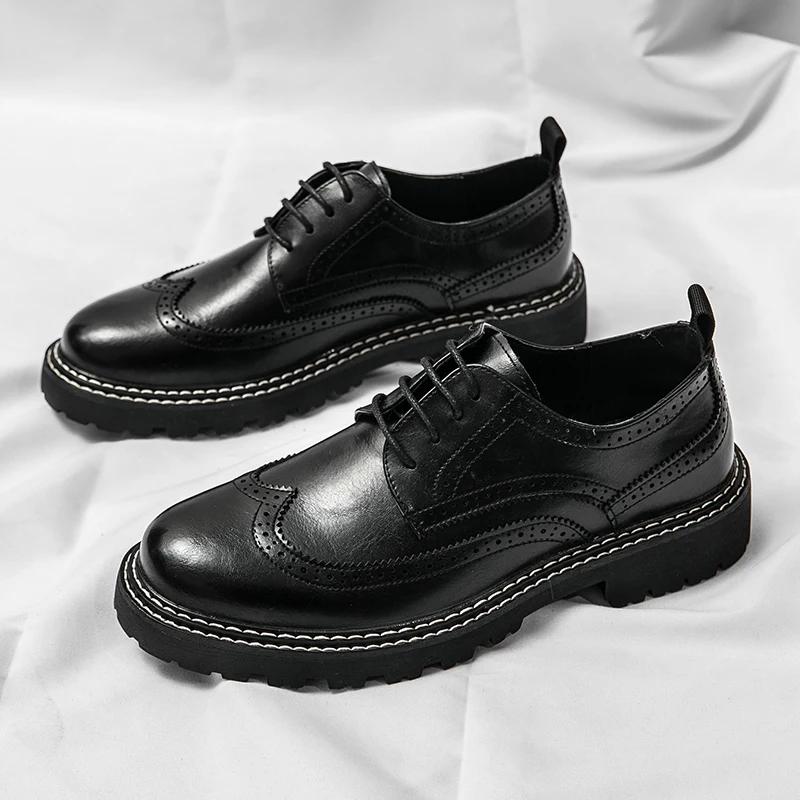 Модные мужские туфли класса люкс от бренда Brogue. Белые повседневные туфли-оксфорды на толстой подошве в британском стиле. Высококачественная мужская обувь на шнуровке.