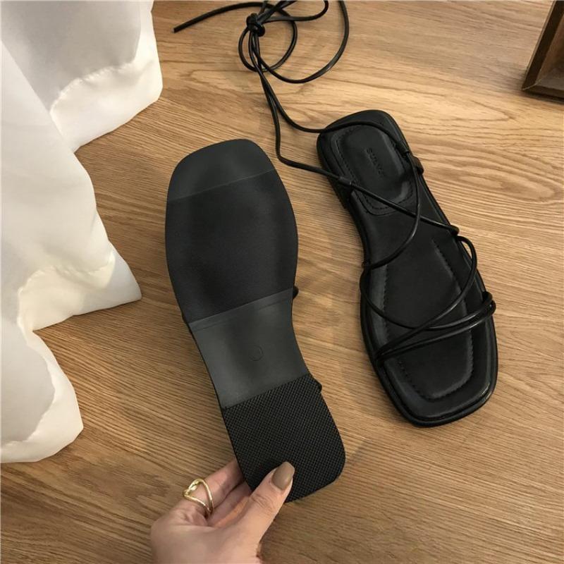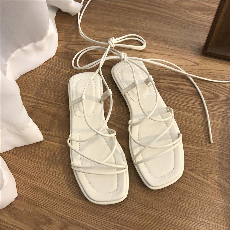 Модная летняя обувь Женские сандалии Модные сексуальные сандалии с открытым носком и перекрестными шнурками Плоские повседневные туфли в стиле феи с узкими ремешками Zapatillas Mujer
