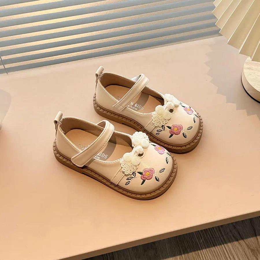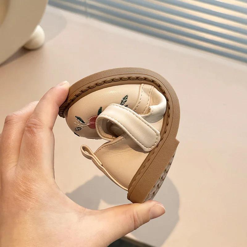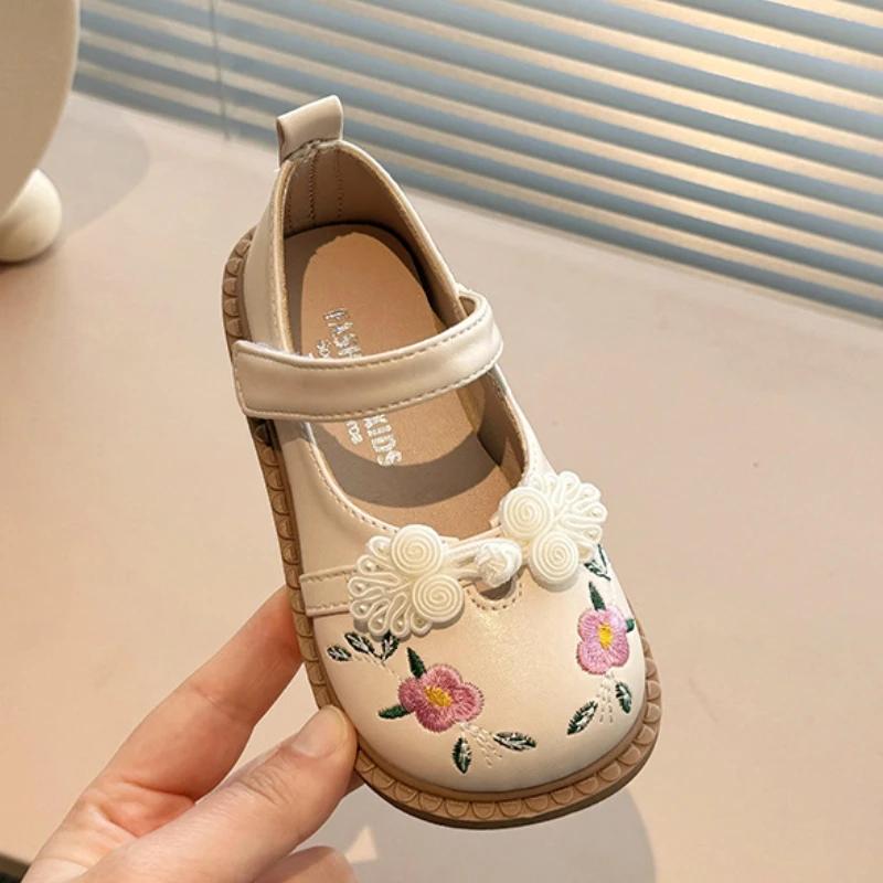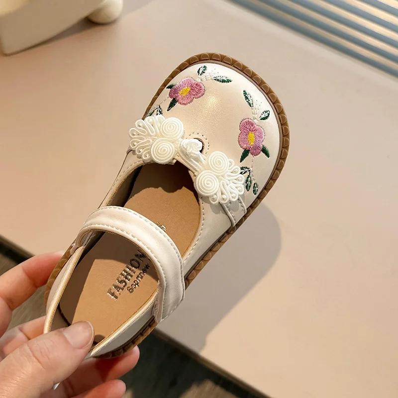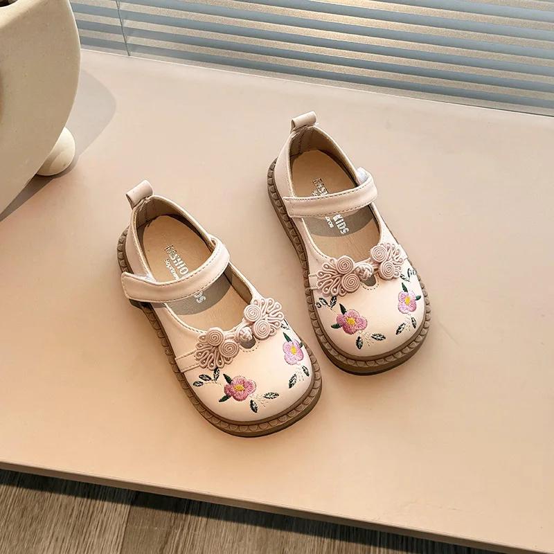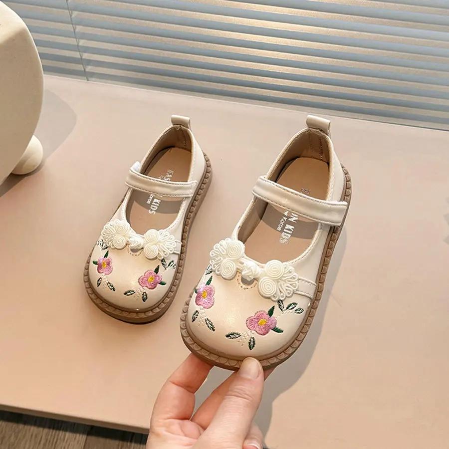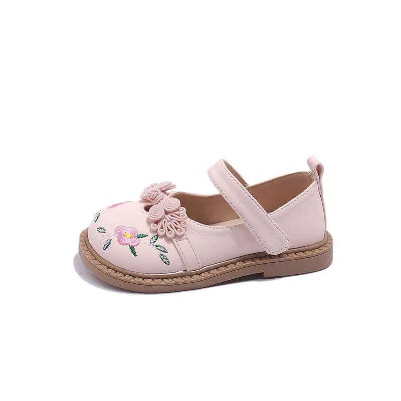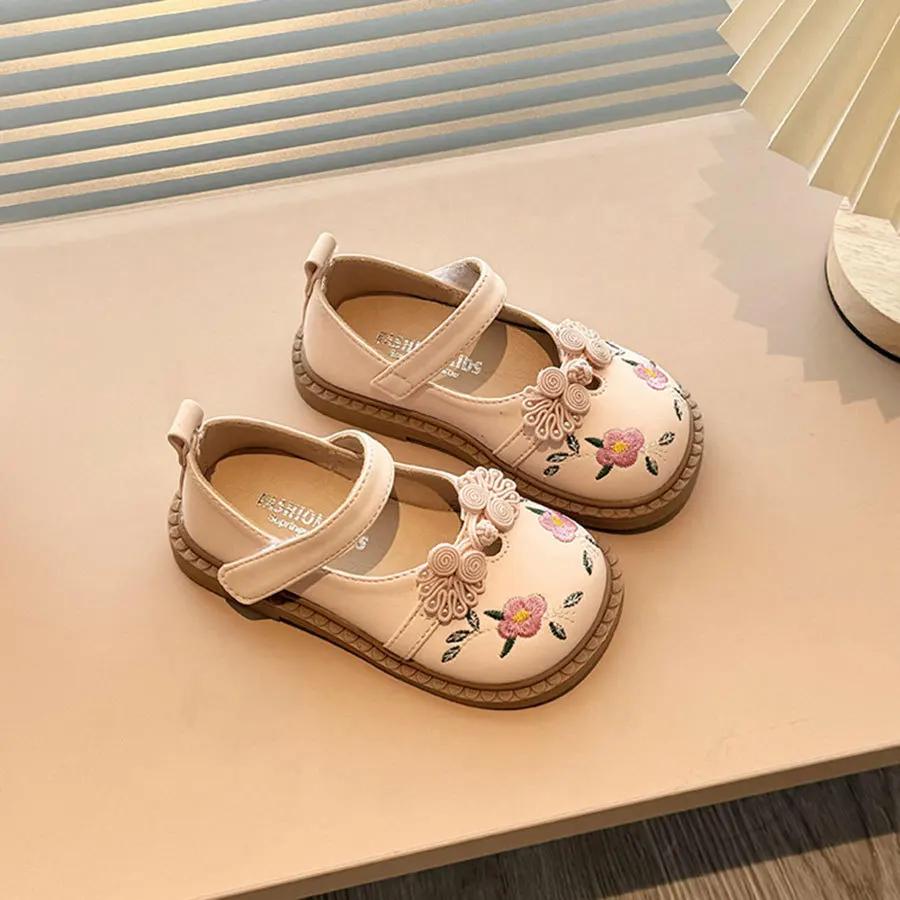 Модная детская кожаная обувь, модные вышитые цветочные туфли на плоской подошве для девочек, повседневные универсальные весенне-осенние детские туфли принцессы, нескользящие