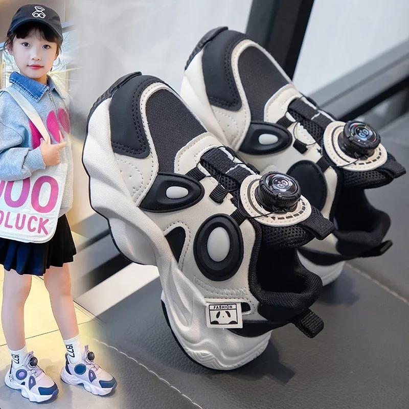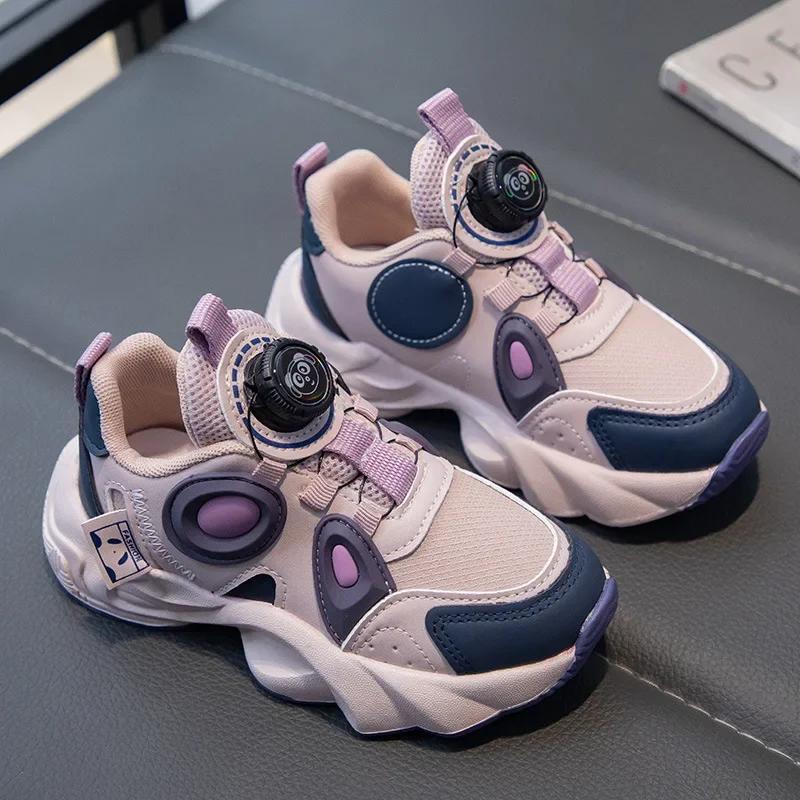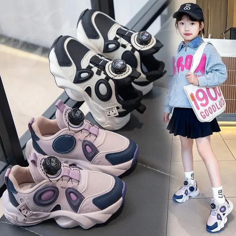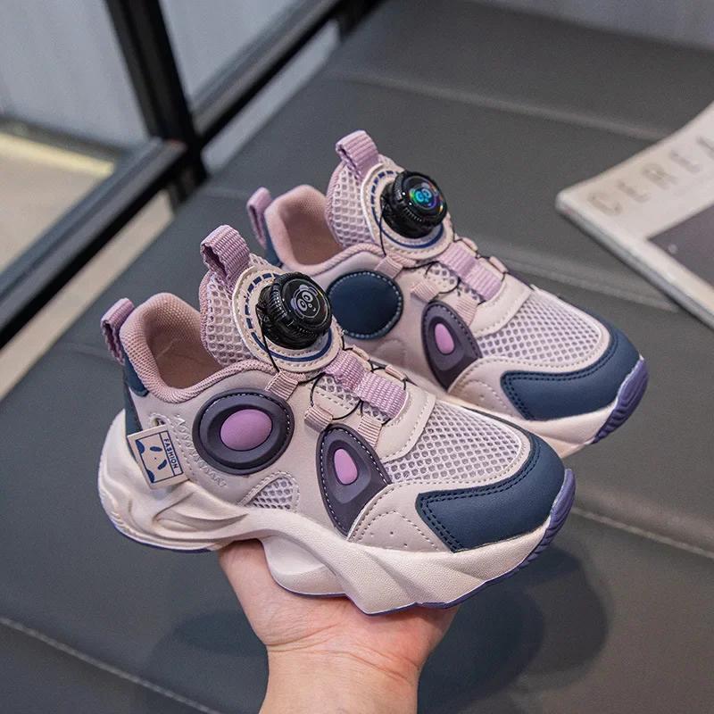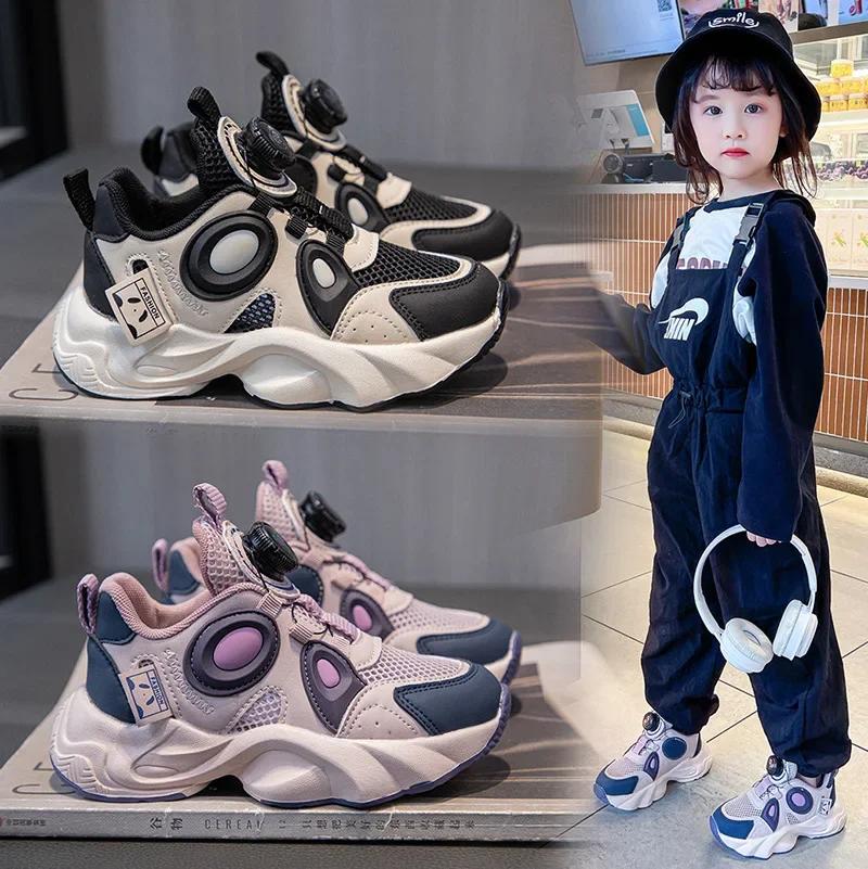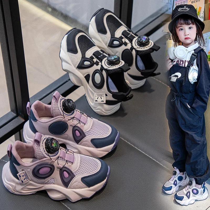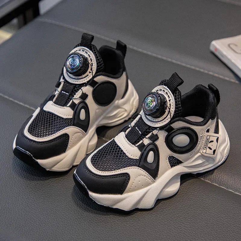 Модная детская спортивная обувь с вращающимися шнурками, сетчатая дышащая, для малышей, школьные кроссовки для бега, нескользящие, детские баскетбольные кроссовки для мальчиков