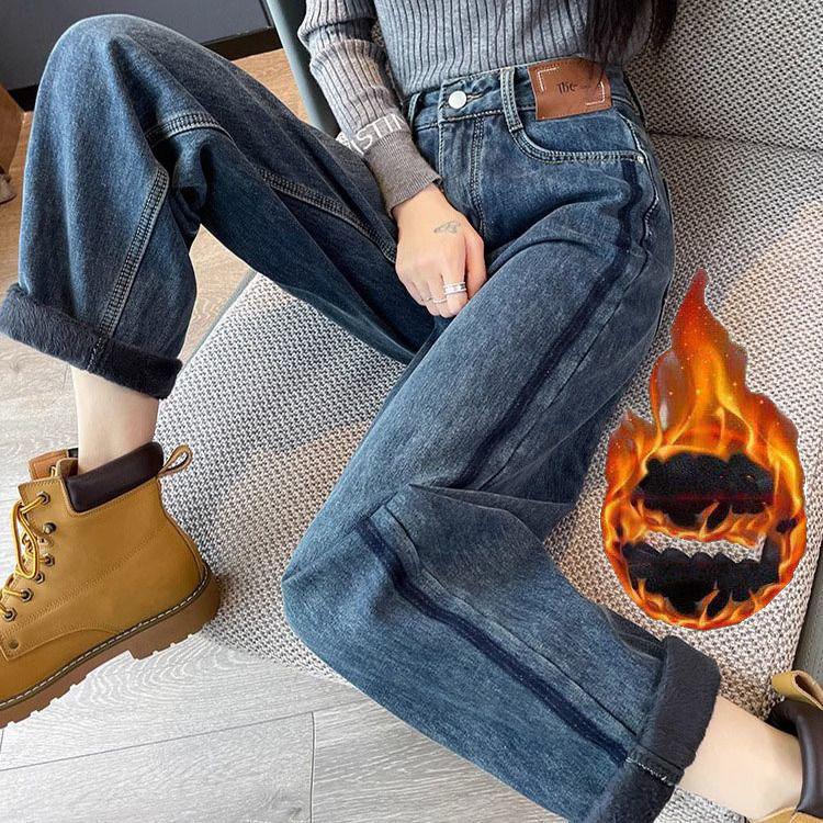 Теплые бархатные женские джинсы с широкими штанинами, корейская мода, толстые плюшевые прямые джинсовые брюки, осень-зима, повседневные, с высокой талией, Vaqueros — купить товар онлайн с бесплатной доставкой по всему миру!