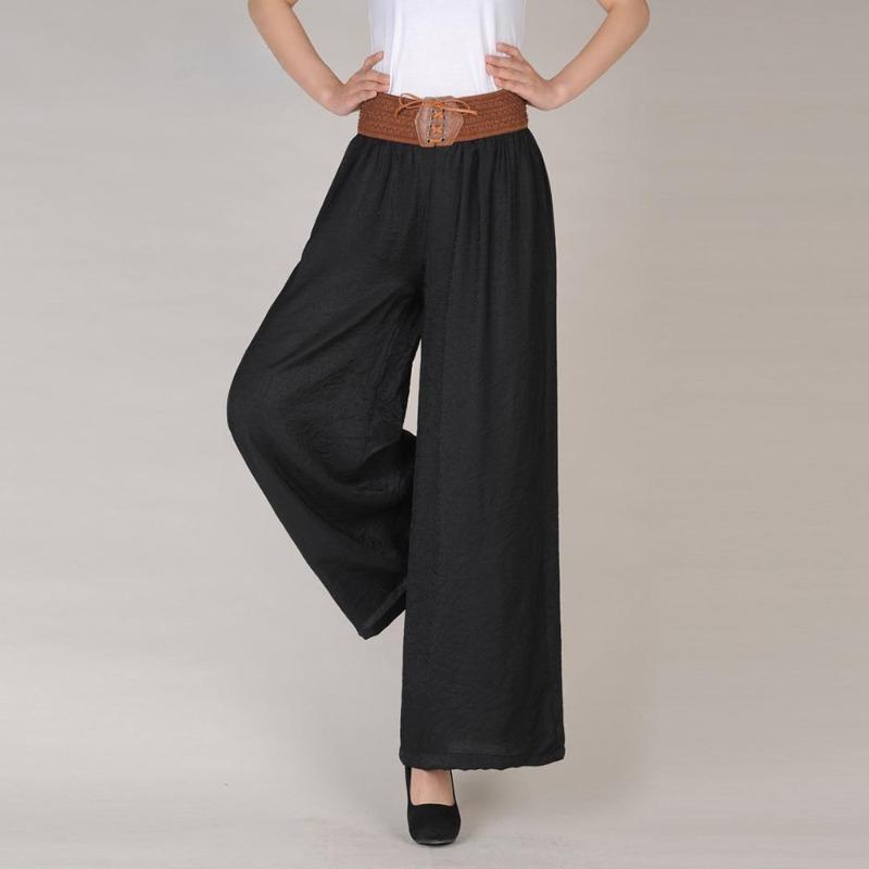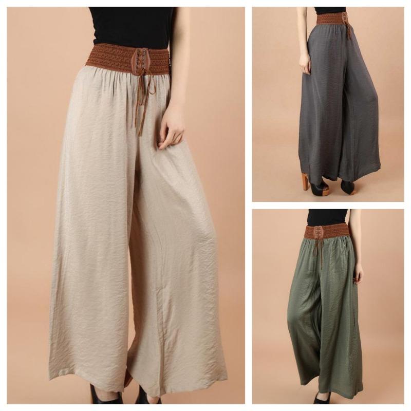 Большие размеры, широкие брюки, винтажные повседневные бандажные женские брюки с высокой талией, повседневные брюки большого размера, Femme