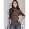 Осенне-зимняя женская однотонная рубашка с полувысоким воротником, двухсторонней шлифовкой, теплая базовая рубашка с высокой эластичной подкладкой и облегающим внешним видом, универсальная базовая рубашка