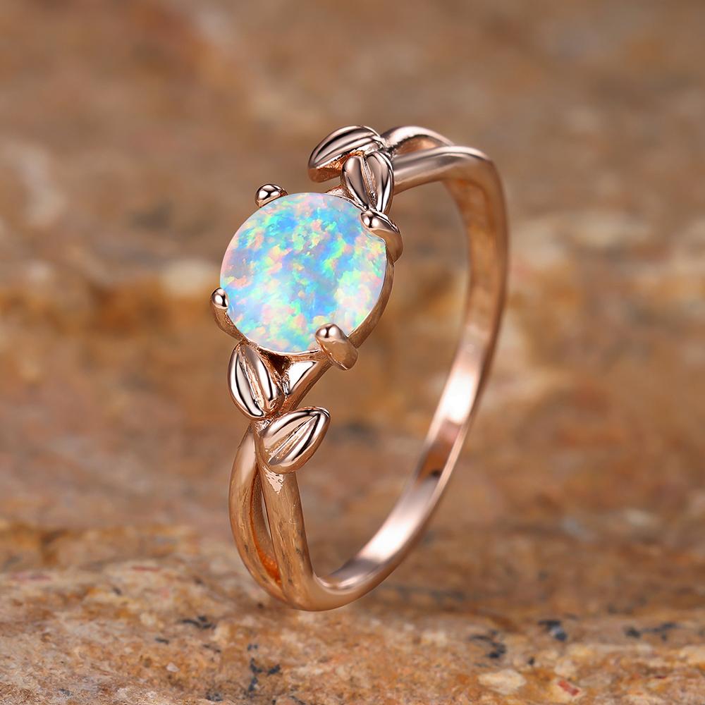 Простые круглые кольца из белого опала для женщин, розового золота, подарок на день рождения для девочек, модные ювелирные изделия