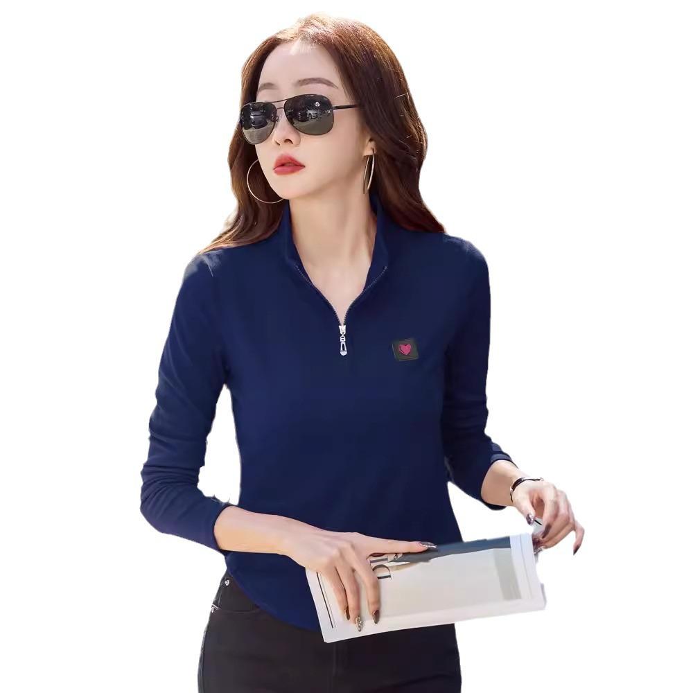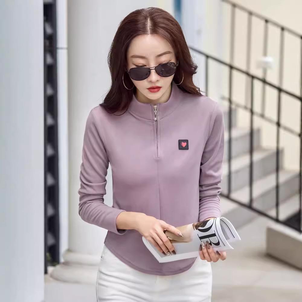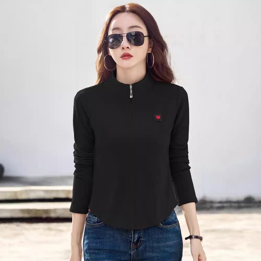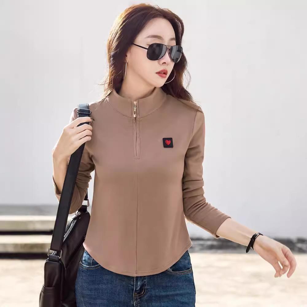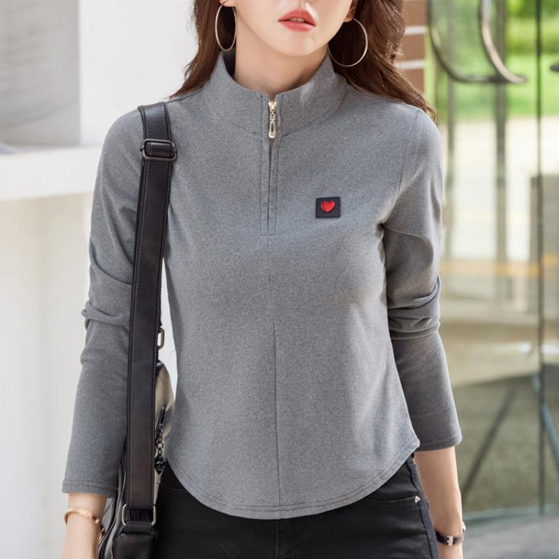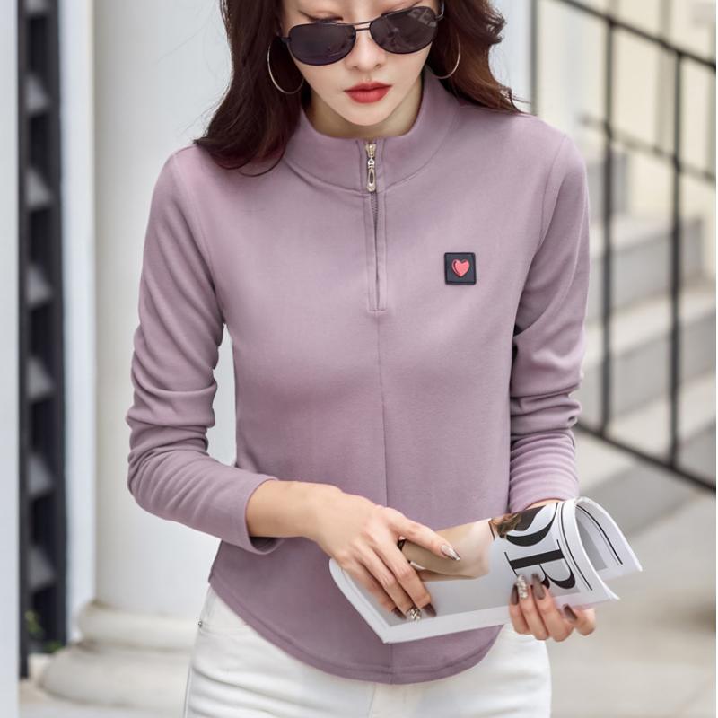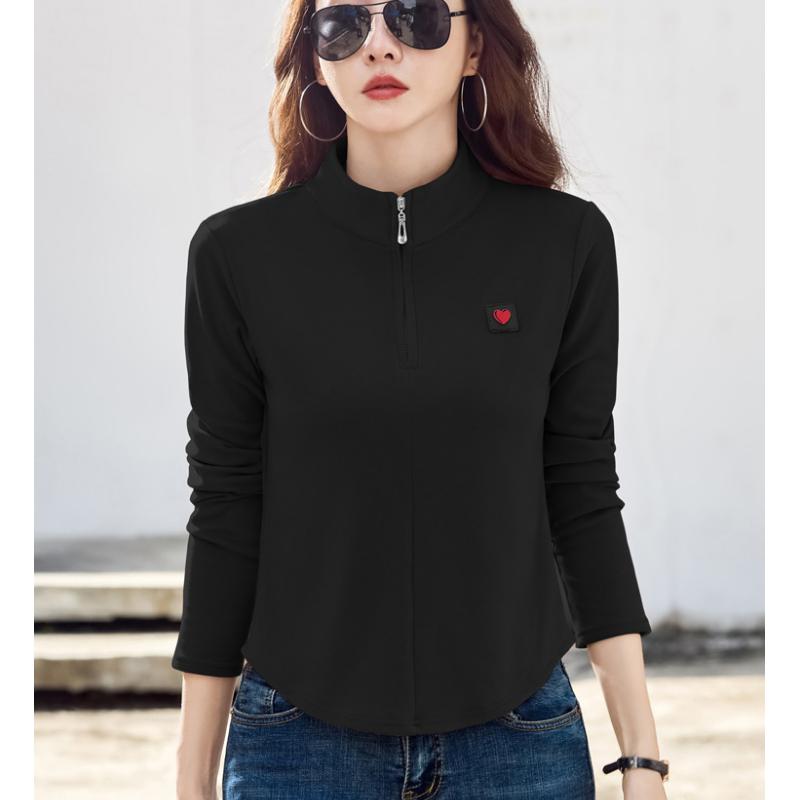 Хлопковая водолазка, весенняя женская футболка в корейском стиле с длинными рукавами, женские повседневные топы на пуговицах, однотонная женская майка