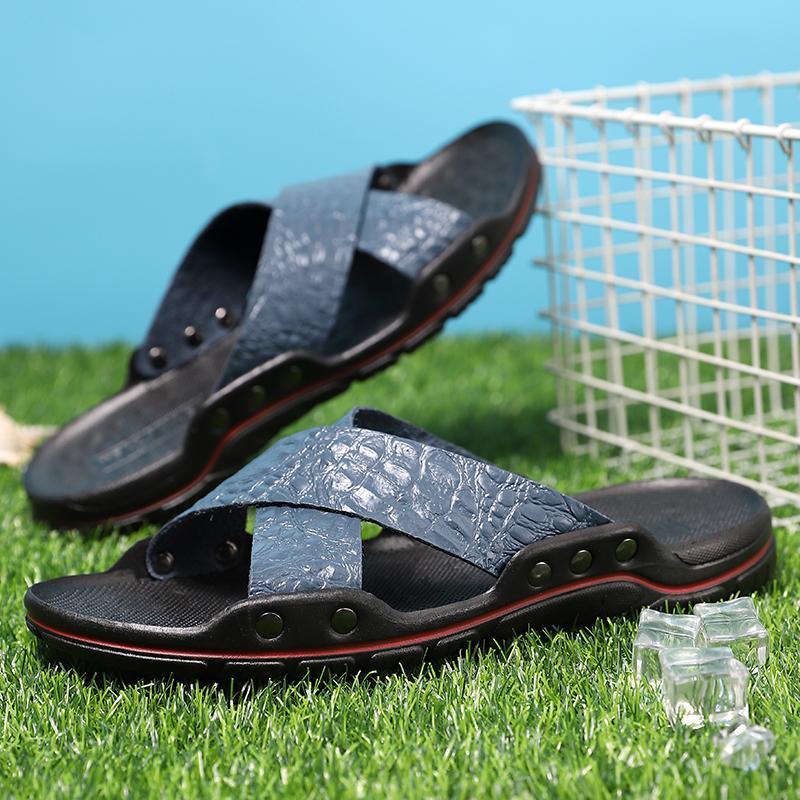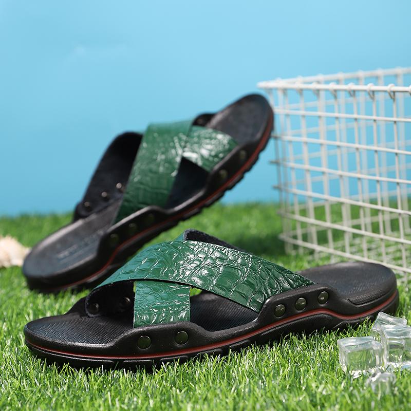 Модные мужские сандалии, тапочки, искусственная кожа, крокодиловый узор, однорядная заклепка, украшение для бизнеса, отдыха, пляжная обувь, большие размеры 38-48
