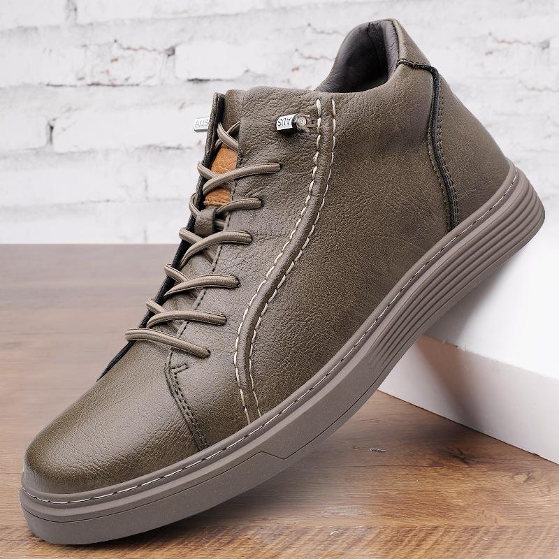 Модные нескользящие универсальные мужские кроссовки на шнуровке из натуральной кожи повседневная обувь с высоким берцем для ходьбы теплые зимние мужские ботильоны кроссовки — купить товар онлайн с бесплатной доставкой по всему миру!