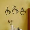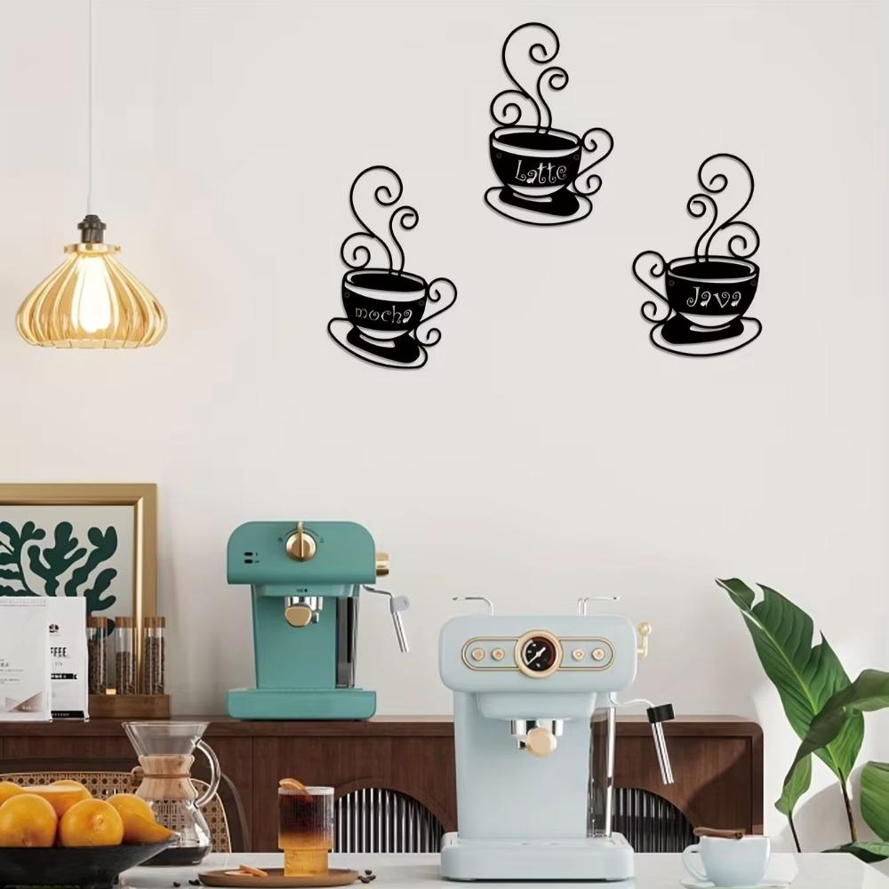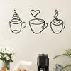 3 шт./комплект металлическая кофейная чашка настенный декор - черный силуэт, кафе тематика металл настенное искусство и декоративная настенная наклейка