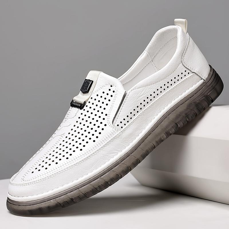 Модные летние белые перфорированные кожаные туфли мужские туфли без застежек из натуральной кожи мужские удобные повседневные туфли мужские удобные мокасины — купить товар онлайн с бесплатной доставкой по всему миру!