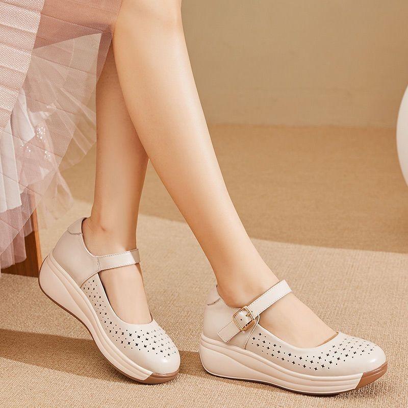 Модные женские босоножки с пряжкой на щиколотке, дышащие, удобные, для танцев, для мам, женские босоножки на танкетке и круглом носке, Zapatillas Mujer